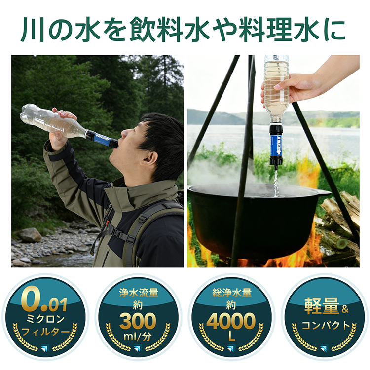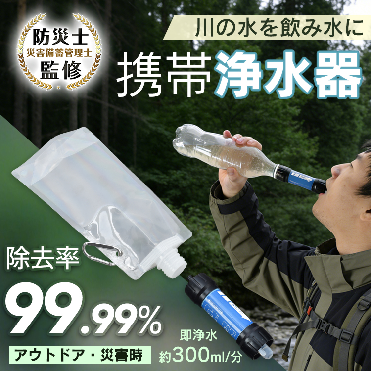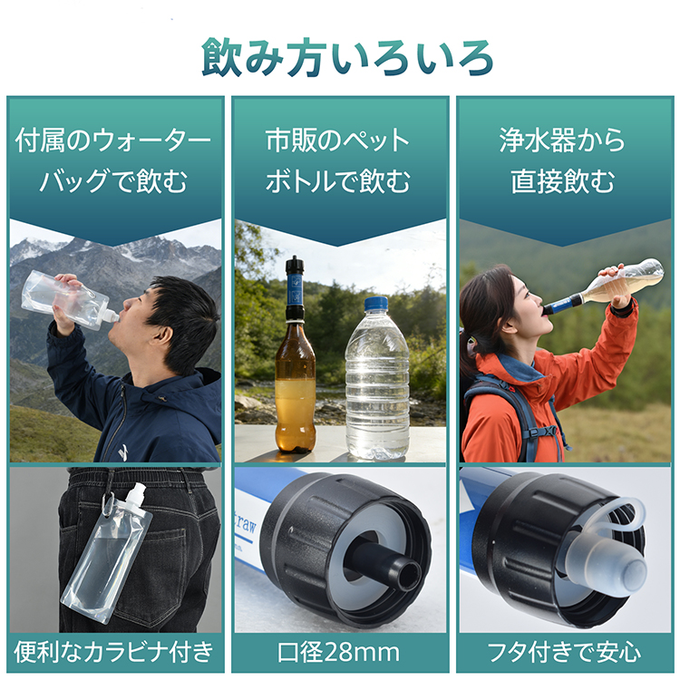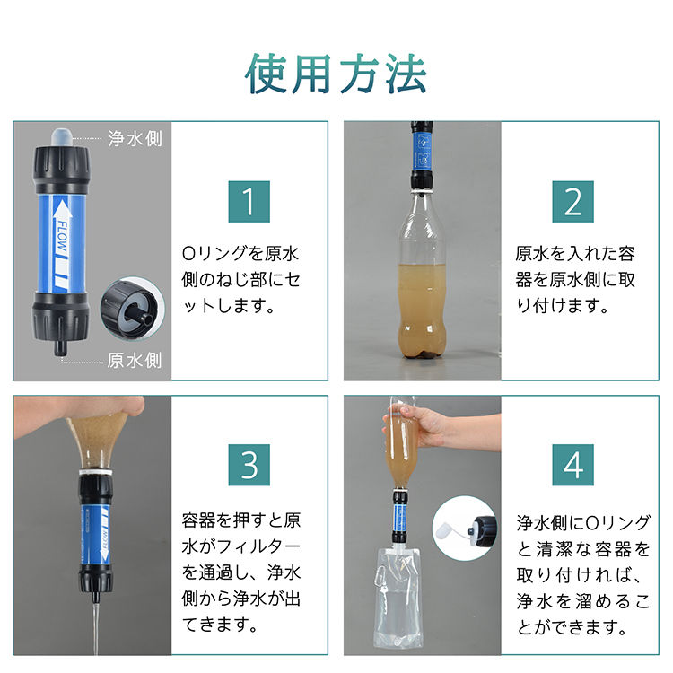 キャンプ 登山 備え BOS 緊急用 浄水 海外旅行 水道水 まずい 対策 水質が悪い地域 旅行用 ジョギング スポーツ オフィス 細菌 除去 濁り 軽量 ペットボトル 川の水 飲める グッズ 非常用 水 確保 ポケットサイズ 小型 ウォーターバッグ 水入れ 容器 セット 持ち運び コンパクト 直飲み カラビナ フタ 敬老の日 父の日 母の日 クリスマス プレゼント ギフト