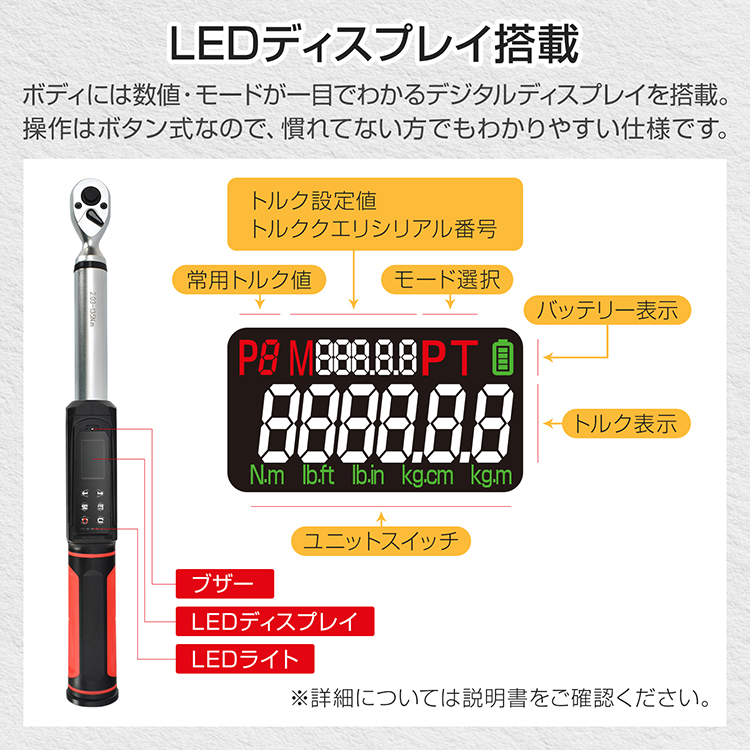 トルク管理 データログ プレセット LEDライト ブザー スパナ ディスプレイ ボタン式 四角ヘッド 左右切り替え データ保存 ケース付き 9.5mm 3/8インチ 12.7mm 高耐久 振動 設備 工事 重機 整備 時計回り 反時計回り 収納 ケース 敬老の日 父の日 母の日 クリスマス プレゼント ギフト