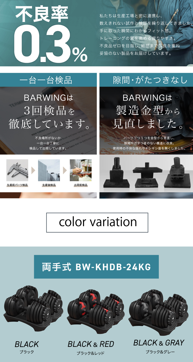 | 仕様 | ・15段階調節・2.5kg〜24kgの重量変更 ・kg表記 |
