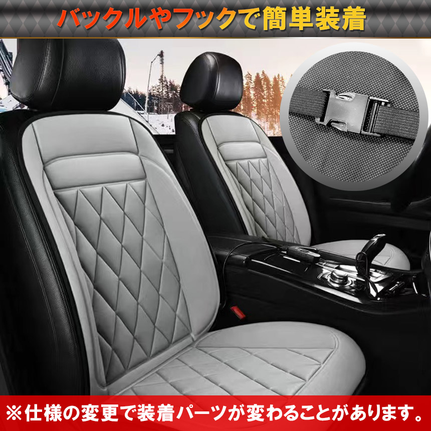 バックルとフックで簡単取り付け!取り付けが簡単なので、使わないとき、しまっておきたいときもすぐ取り外せます。電源もシガーソケットから取れるので、電池切れ等の心配は一切ございません。滑りにくい底部採用で滑りにくく、座面から動きにくいです。