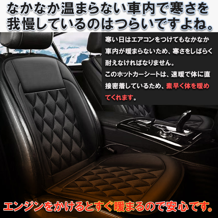 寒い冬に最適のシートシーター!暖房はなかなか暖かくならないし、冷たい座席もつらい...そんな悩みを解決してくれる簡単設置&すぐぽかぽかの本製品。すぐ暖まるので、我慢していた寒さを耐える待ち時間を解消!
