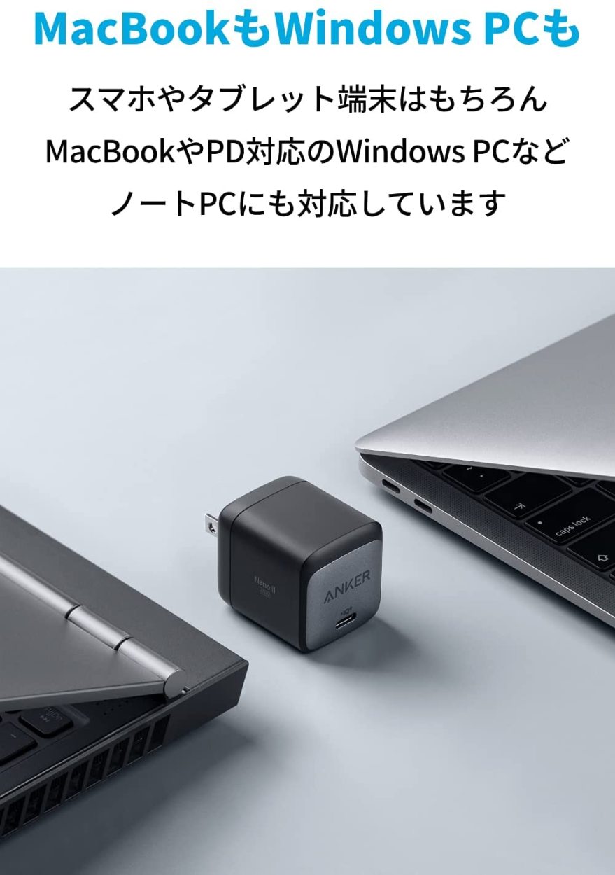 ・MacBookやPD対応のWindows PCにも対応: 最大45W出力を備え、MacBookだけでなく、PD対応のさまざまなWindows PCにも充電できます。