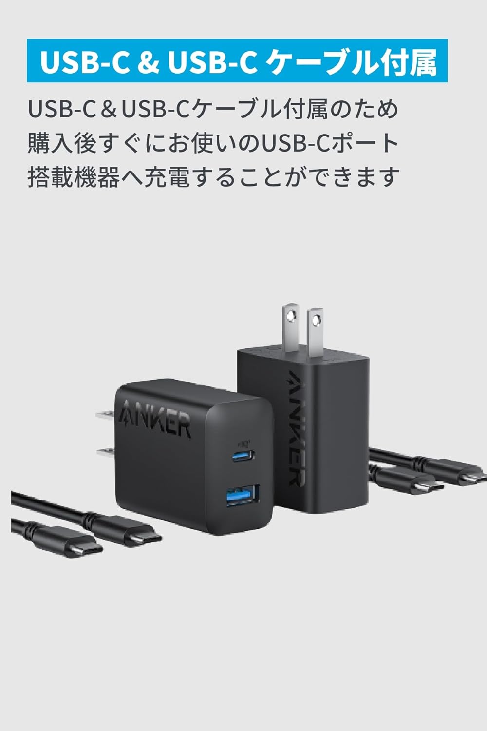 Anker Charger (20W, 2-port) with USB-C & USB-C ケーブル 2個セット