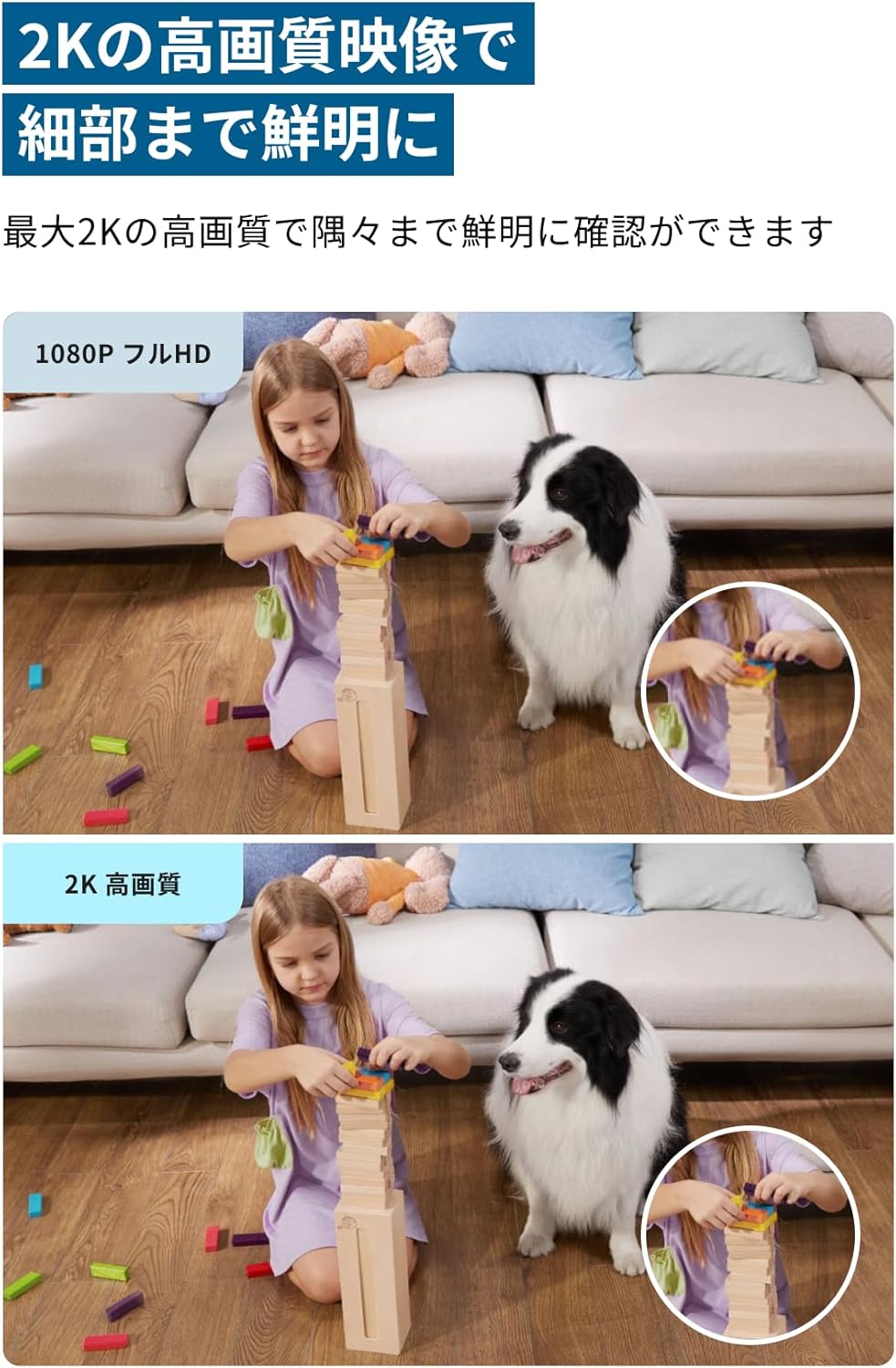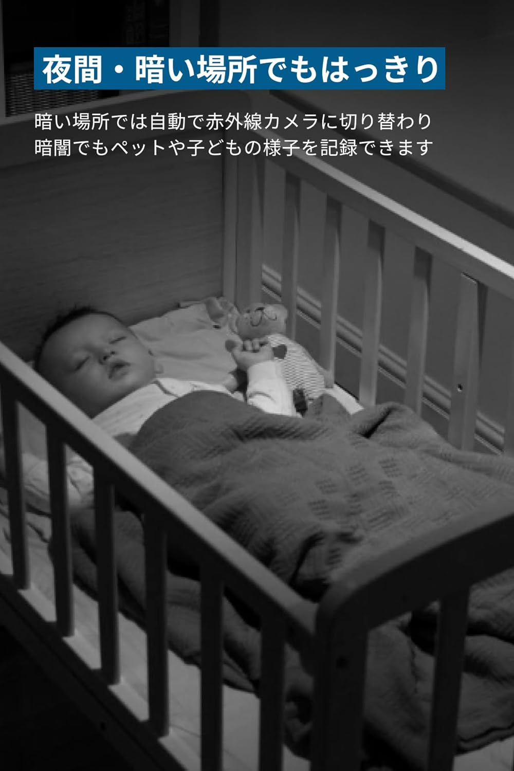 Eufy Securityアプリを使用して離れた場所から部屋の様子を確認することができます。自動夜間モードを搭載し、暗い部屋でもクリアな映像で、見守りや防犯対策に最適です。