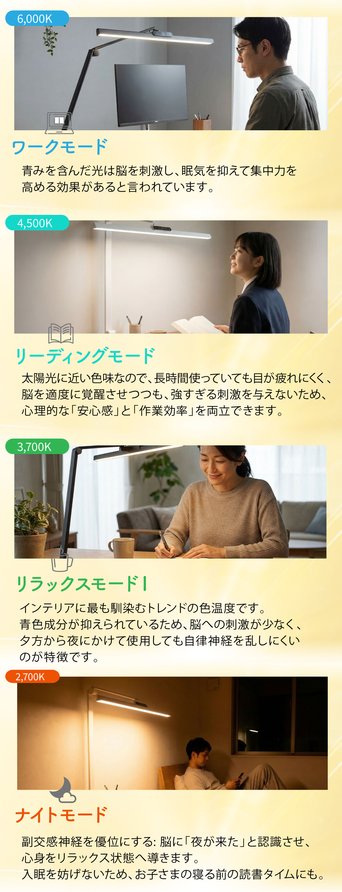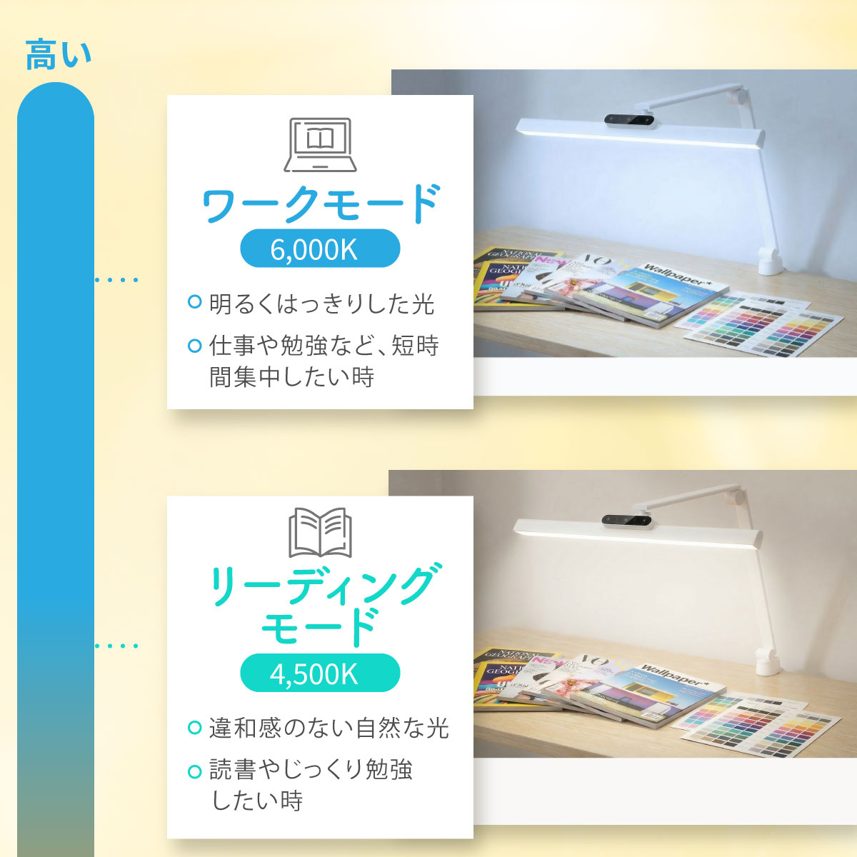 【商品説明】自然光に一番近い光の質、目に優しいLEDデスクライト