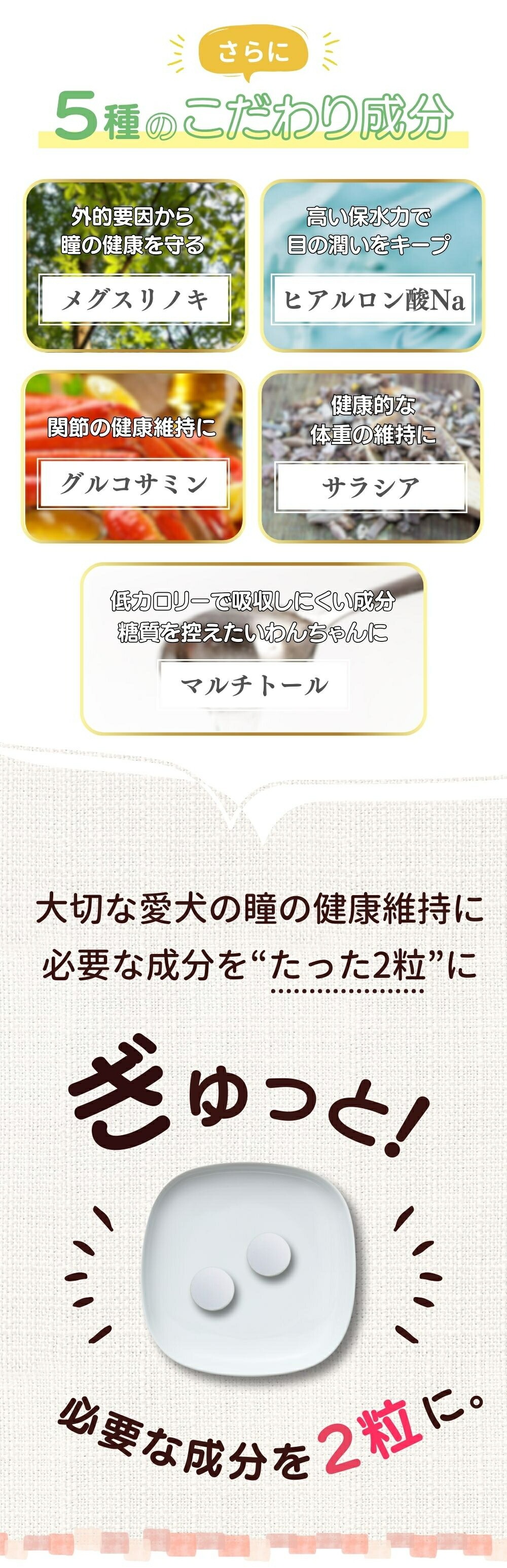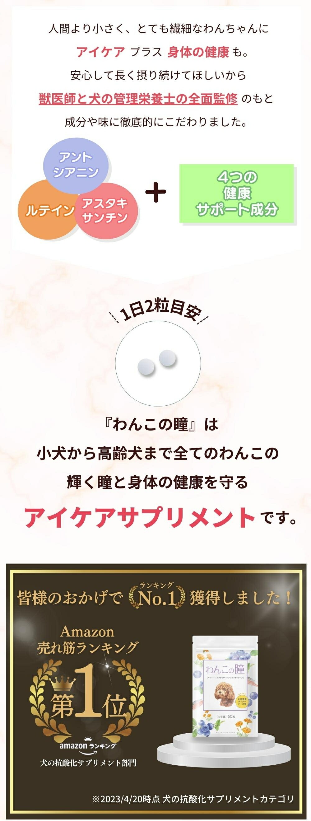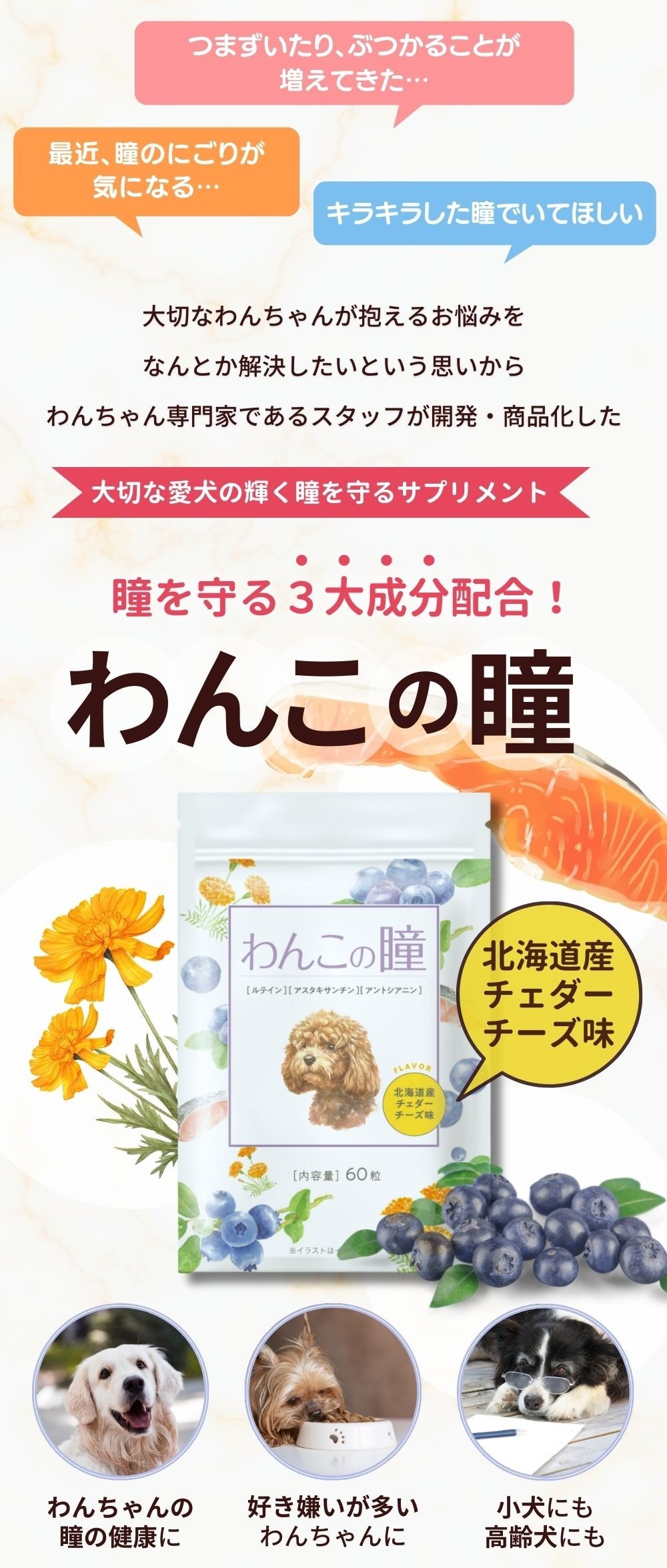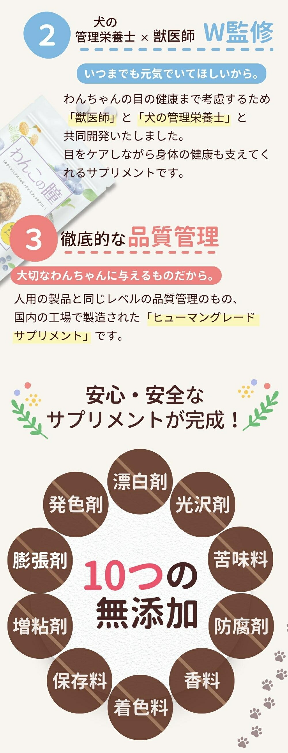 さらに、わんちゃんの目の健康まで考慮するため「犬の管理栄養士」と共同開発いたしました。