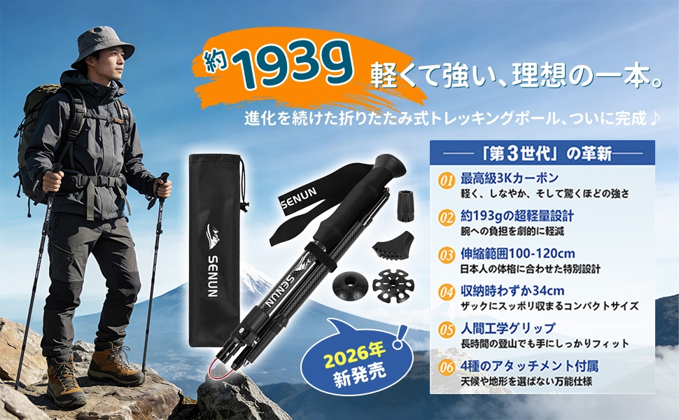日本人の身長に特化して対応しており、お好みの長さに応じて100cmから120cmとの長さ調整が可能です。 レバーロック式で1秒だけお好みな長さを精確に調整できます。適切な長さのトレッキングポールだけが登山で最高のパフォーマンスを発揮します。初心者の方、今からクライミングを始めたい方に最適です。 |