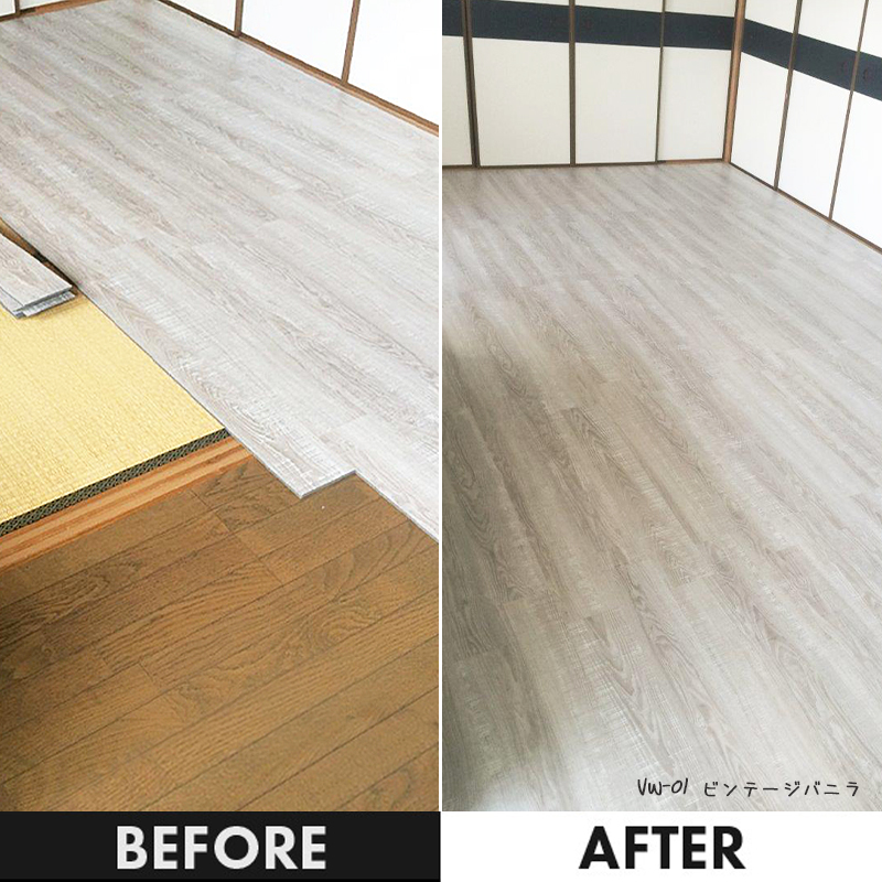 既存のフローリングの上から施工できるため賃貸住宅や原状回復を考えた床DIYにもおすすめの床材です。