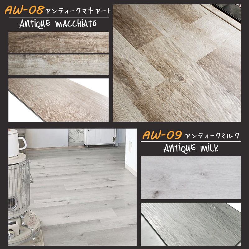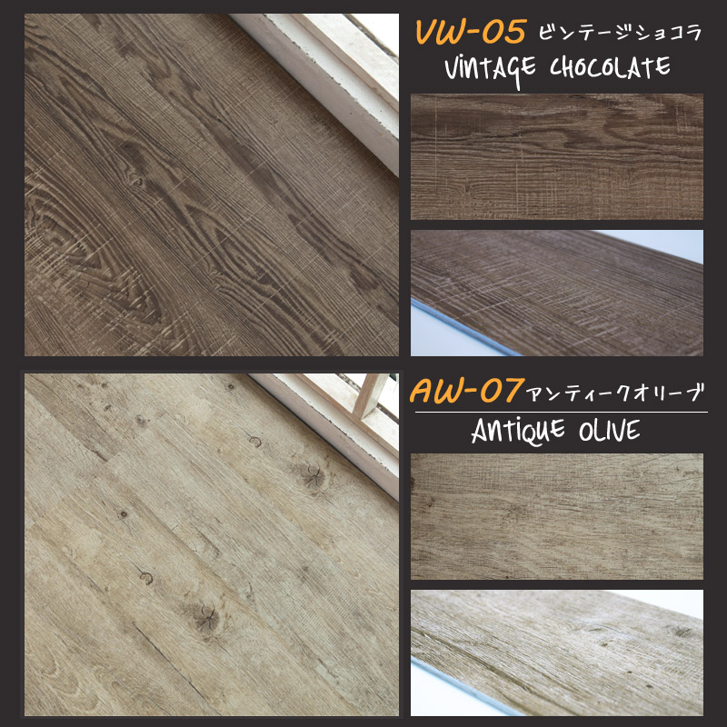 ビンテージバニラ、ビンテージキャメル、ビンテージラテ、ビンテージカフェ、ビンテージショコラ、アンティークオリーブ、アンテークミルク、アンテークティラミス、アメリカンビンテージ、ナチュラルバニラ、ナチュラルビスケット