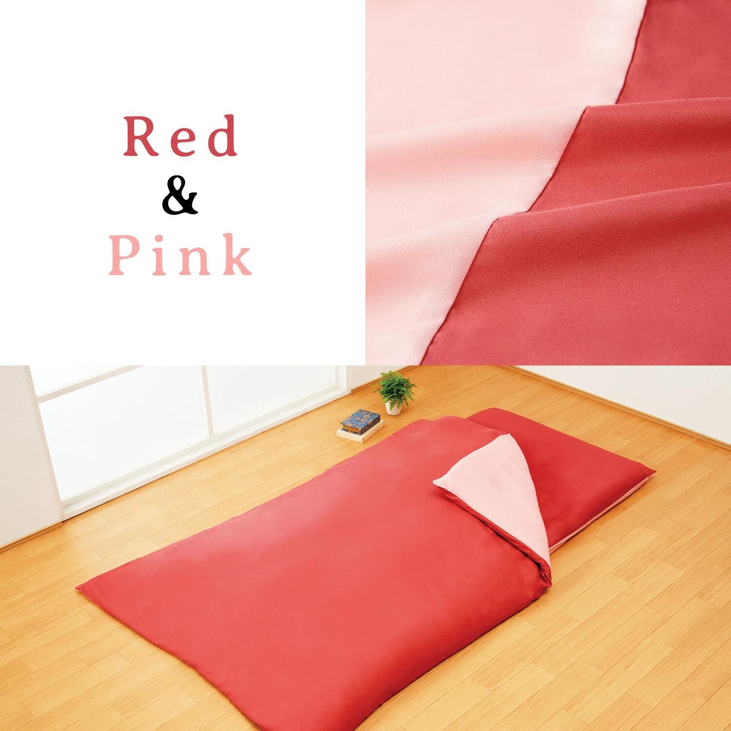リバーシブル仕様のレッド/ピンク、モスグリーン/ライトグリーン