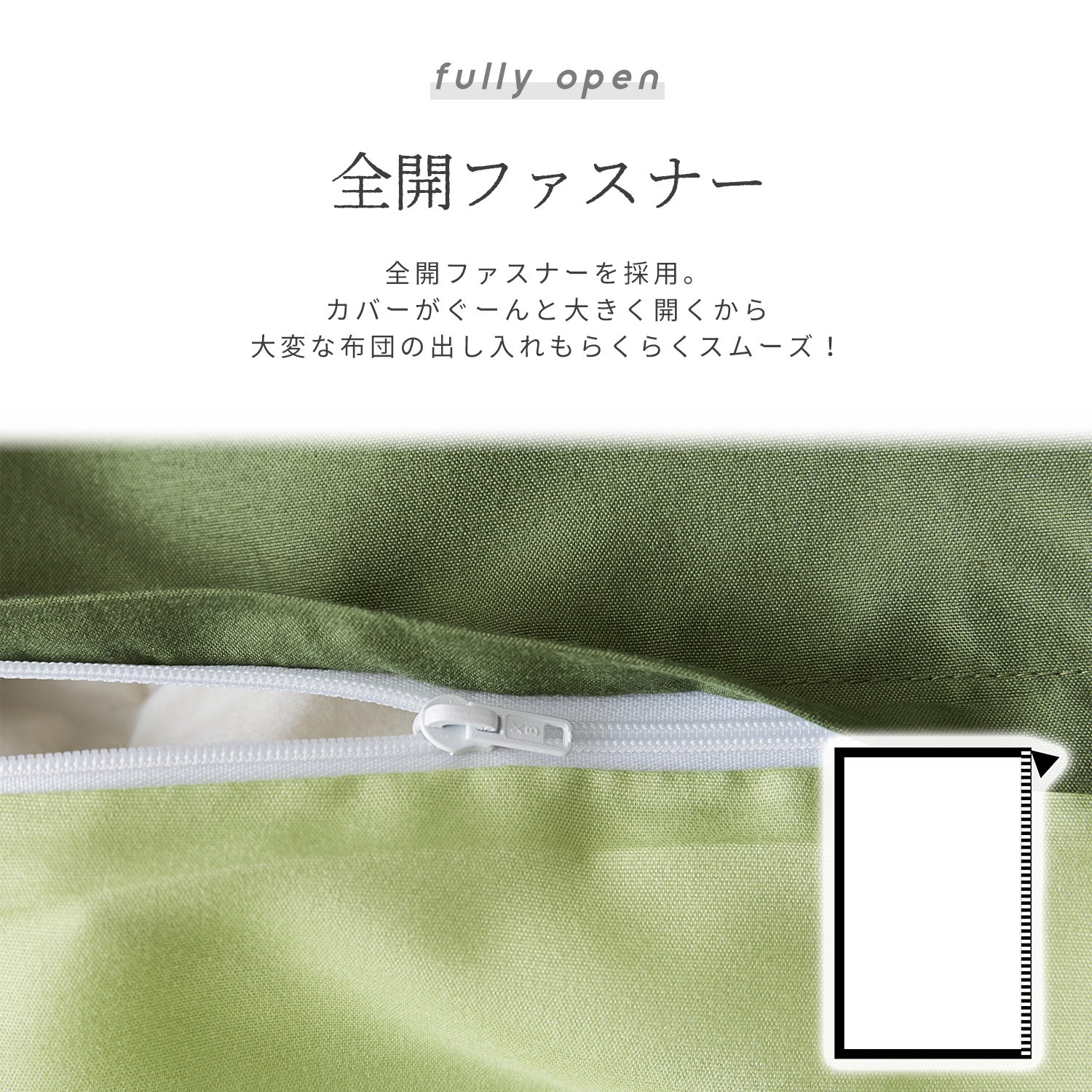 【全開ファスナーを採用!】