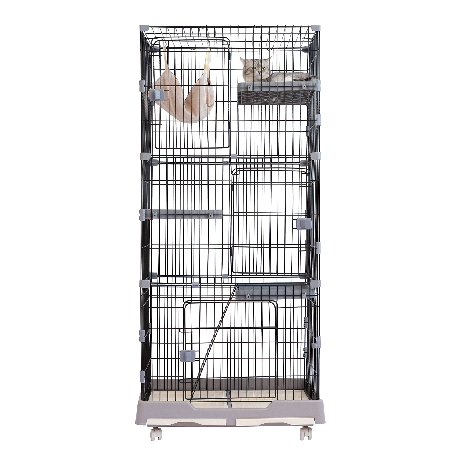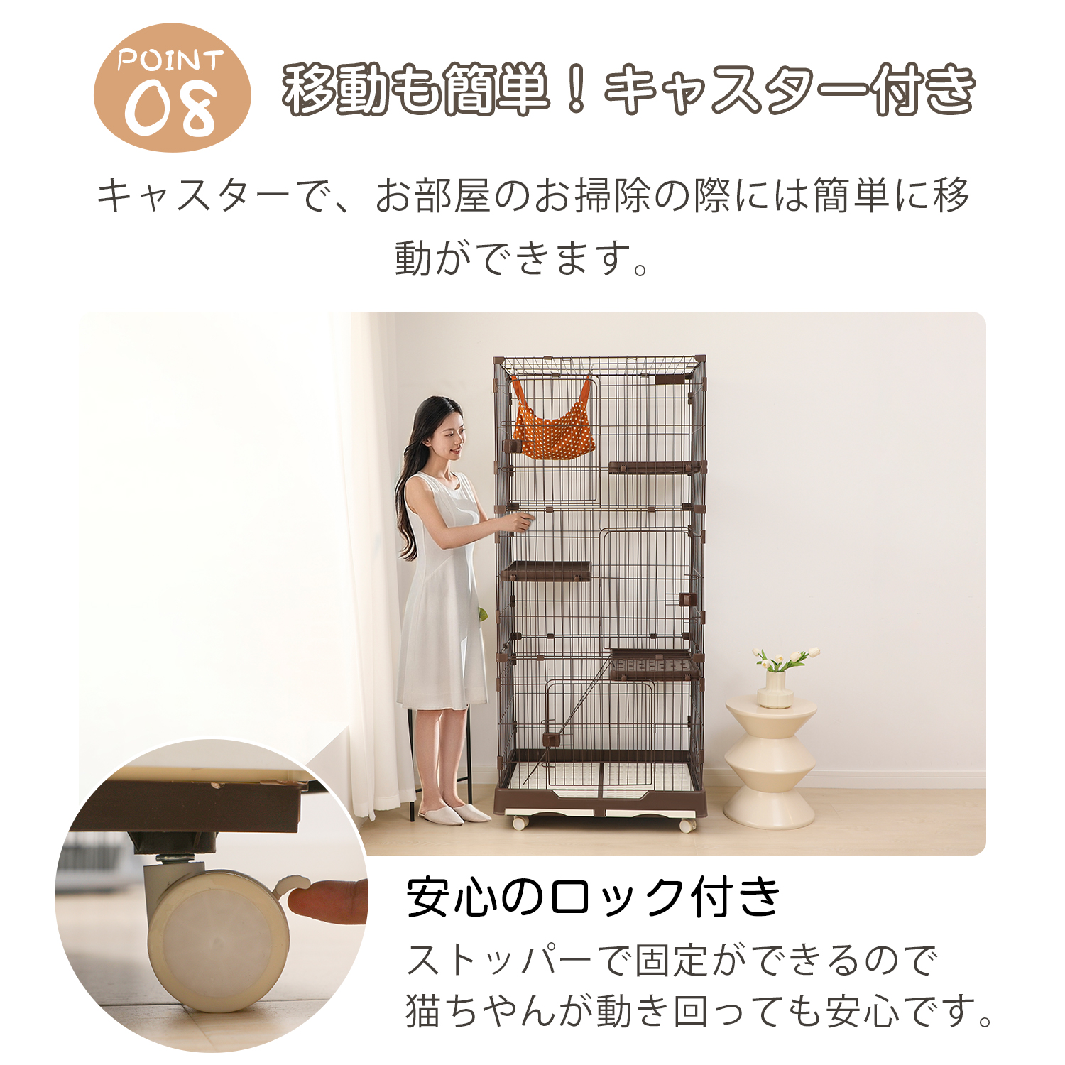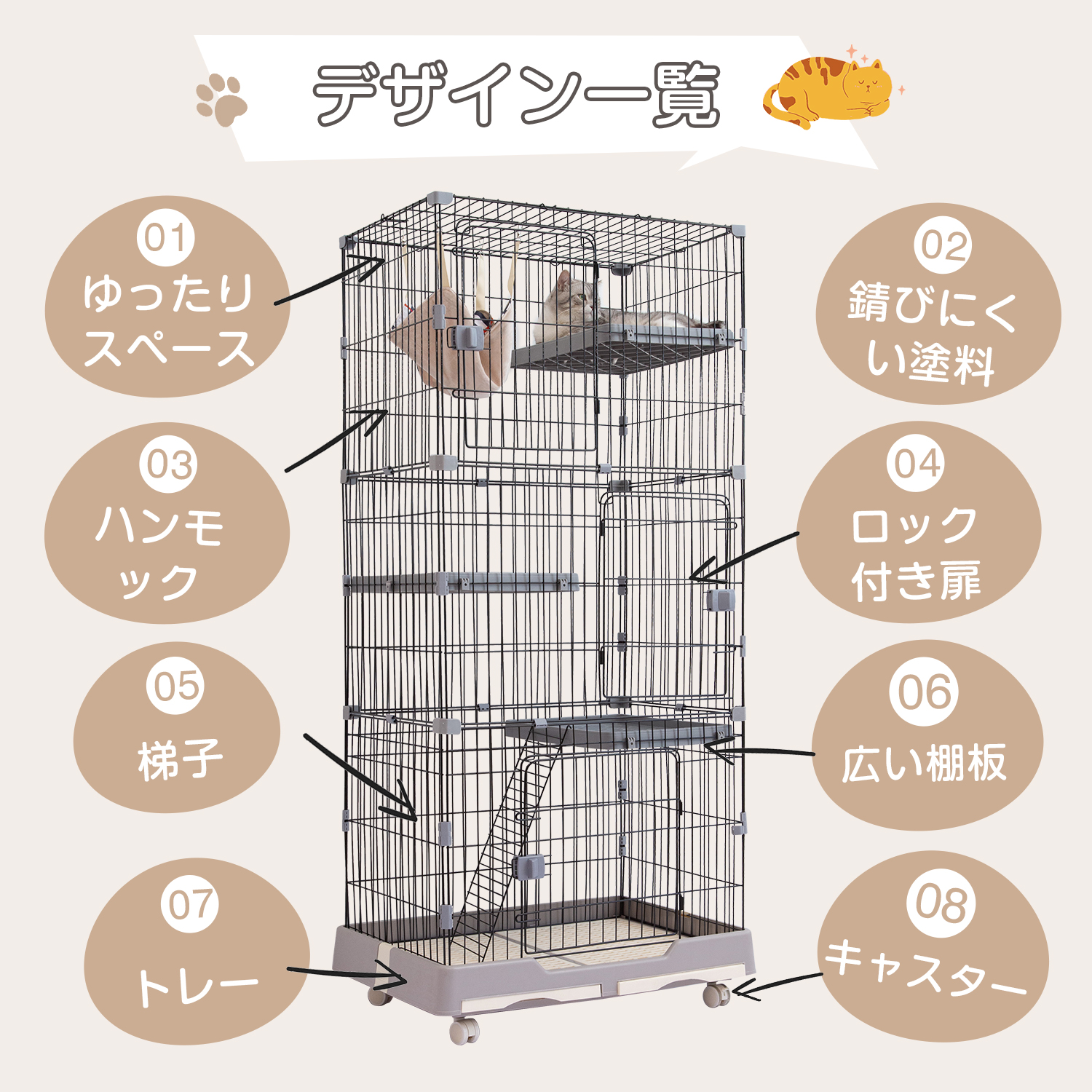 梱包内容:ケージ本体X1、棚板X2、梯子X1、トレー*2、 ハンモック*1、キャスター*4