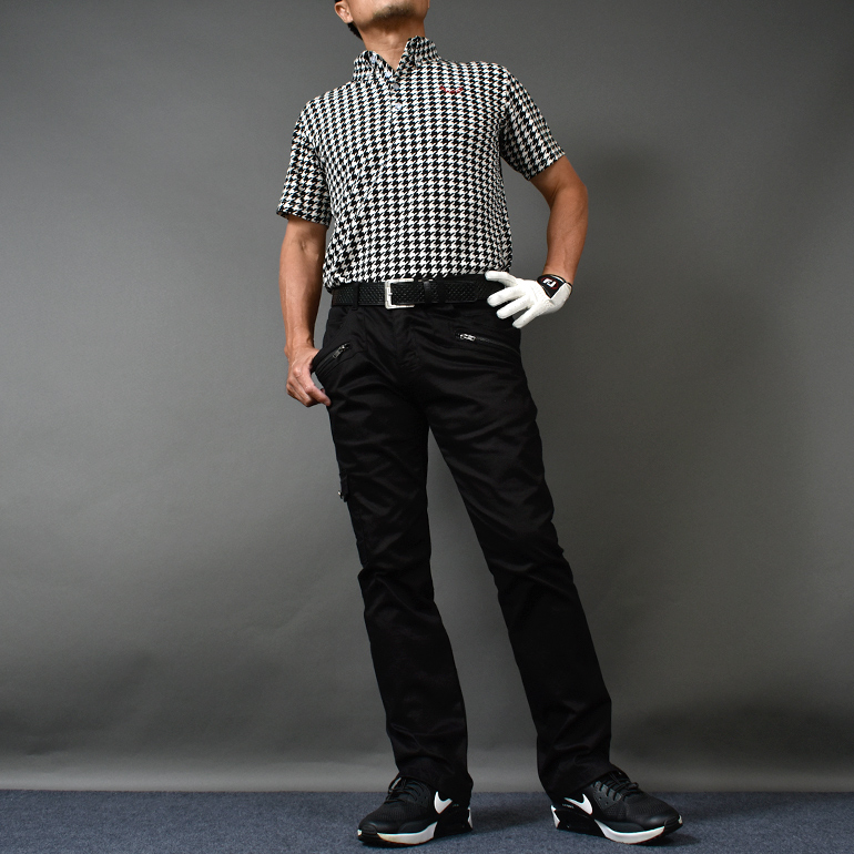 【商品説明】ゴルフエアメンズ無地迷彩柄チェック柄伸縮性抜群ストレッチ素材スリット入り脚長メンズゴルフパンツ
