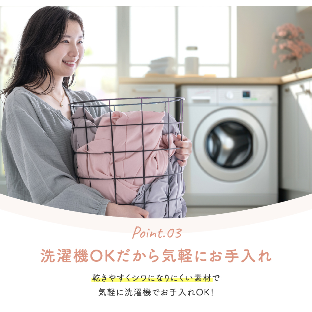 家庭用の洗濯機で丸洗いでき、いつも清潔に保てます。洗濯ネットをご使用の上、他のものと分けて洗うことをお勧めします。漂白剤の使用とタンブラー乾燥は避けてください。