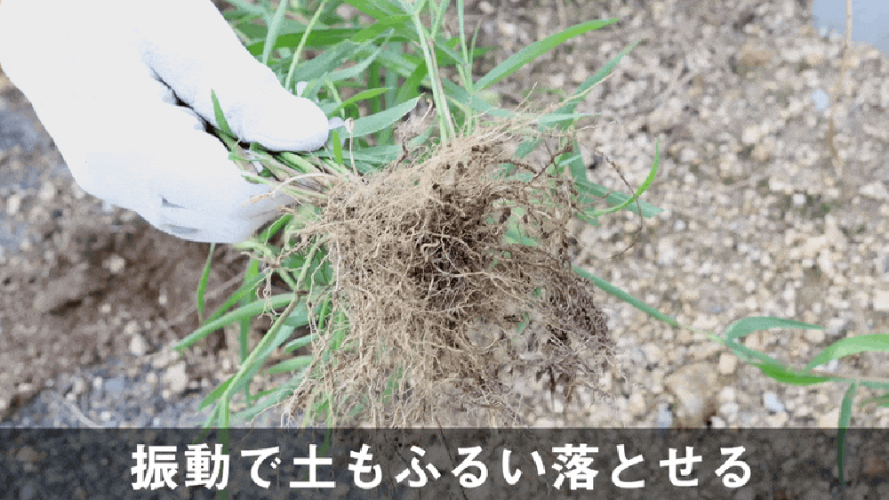 振動で根を浮かせて抜く仕組みなので、誤って植物や周囲を傷つけにくく、花壇の細かな雑草にも便利です。