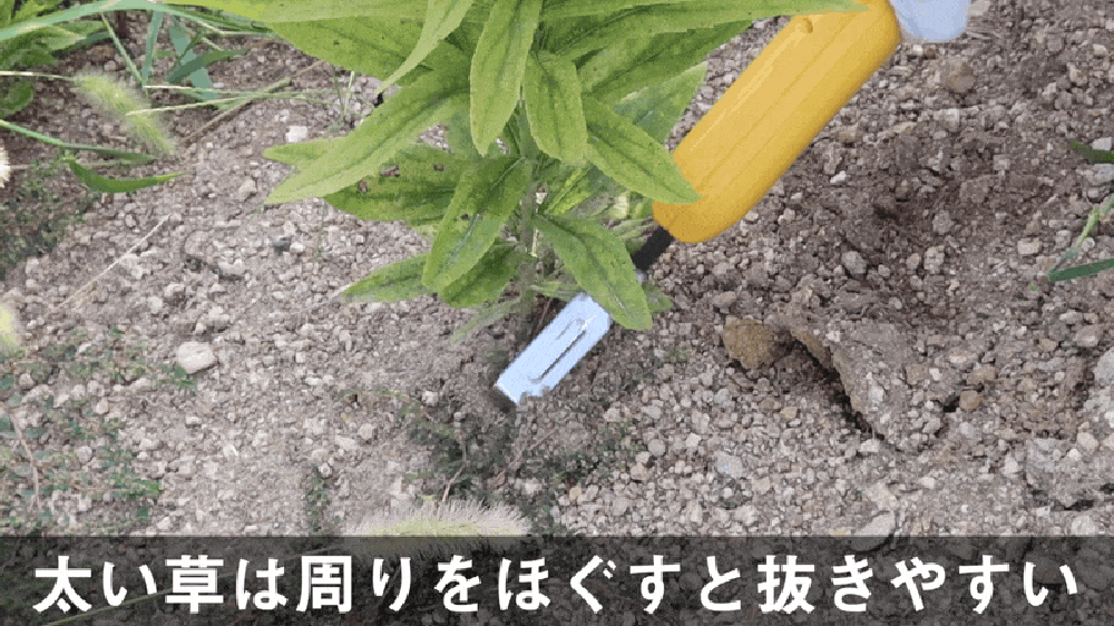 除草作業で一番面倒なのは、すぐに生えてくる“残った根”の処理。
