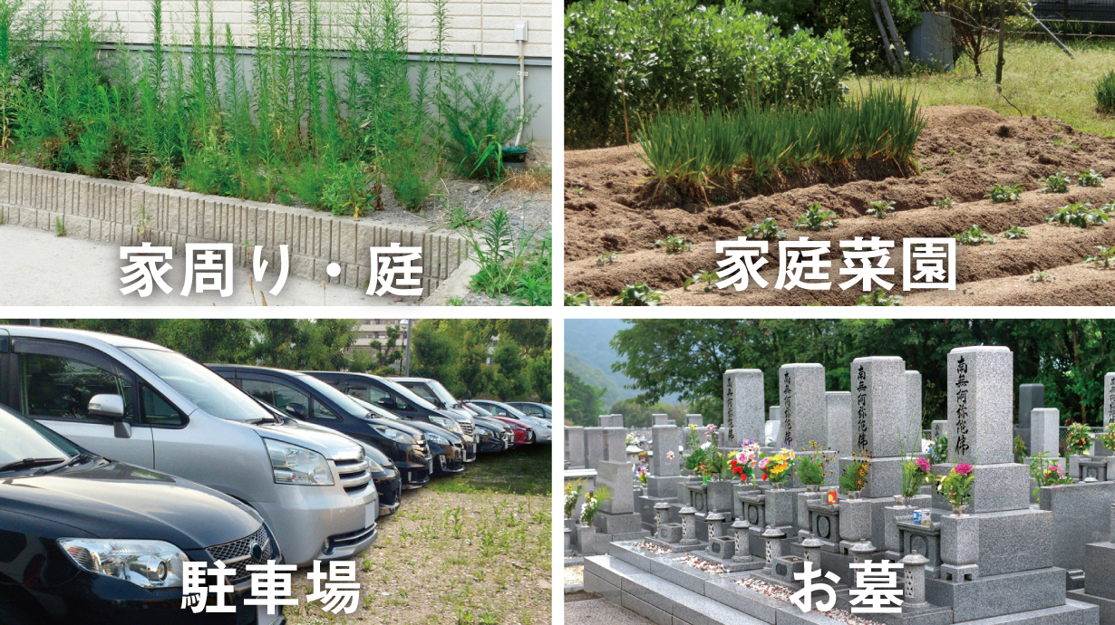 庭の雑草はもちろん、畑・菜園の畝間・駐車場・玄関までのアプローチなどの家周りのスキマなど、“手抜きしにくい場所”でも強みを発揮。