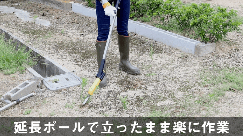 別売りの延長ポールで、腰をかがめず、立ったままで除草作業がより楽ちんに。