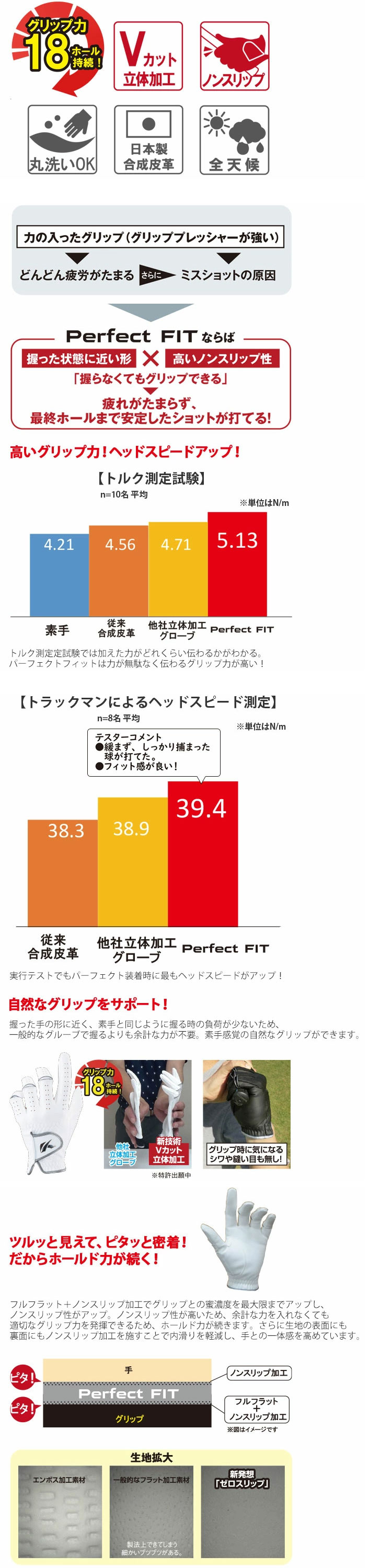 パーフェクトフィット メンズ ゴルフ グローブ 左手用