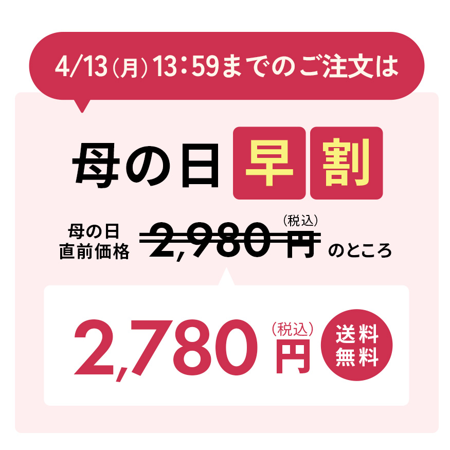 | ※予定数に達し次第、早割は終了致します。 4/2(木) 13:59まで 早割価格 2,680円(税込) 4/2(木) 14:00から 早割価格 2,780円(税込) 4/13(月) 14:00から 早割価格 2,880円(税込) 4/21(火) 14:00から 早割価格 2,930円(税込) 4/27(月) 0:00から 2,980円(税込) 早割条件は販売状況によって変更になる場合がございます。 |