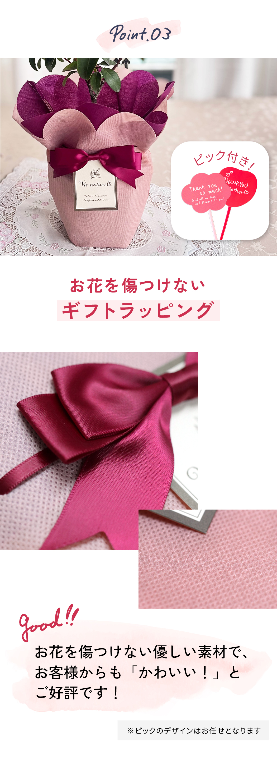 ・お花を傷つけない優しい素材の「ギフトラッピング」
