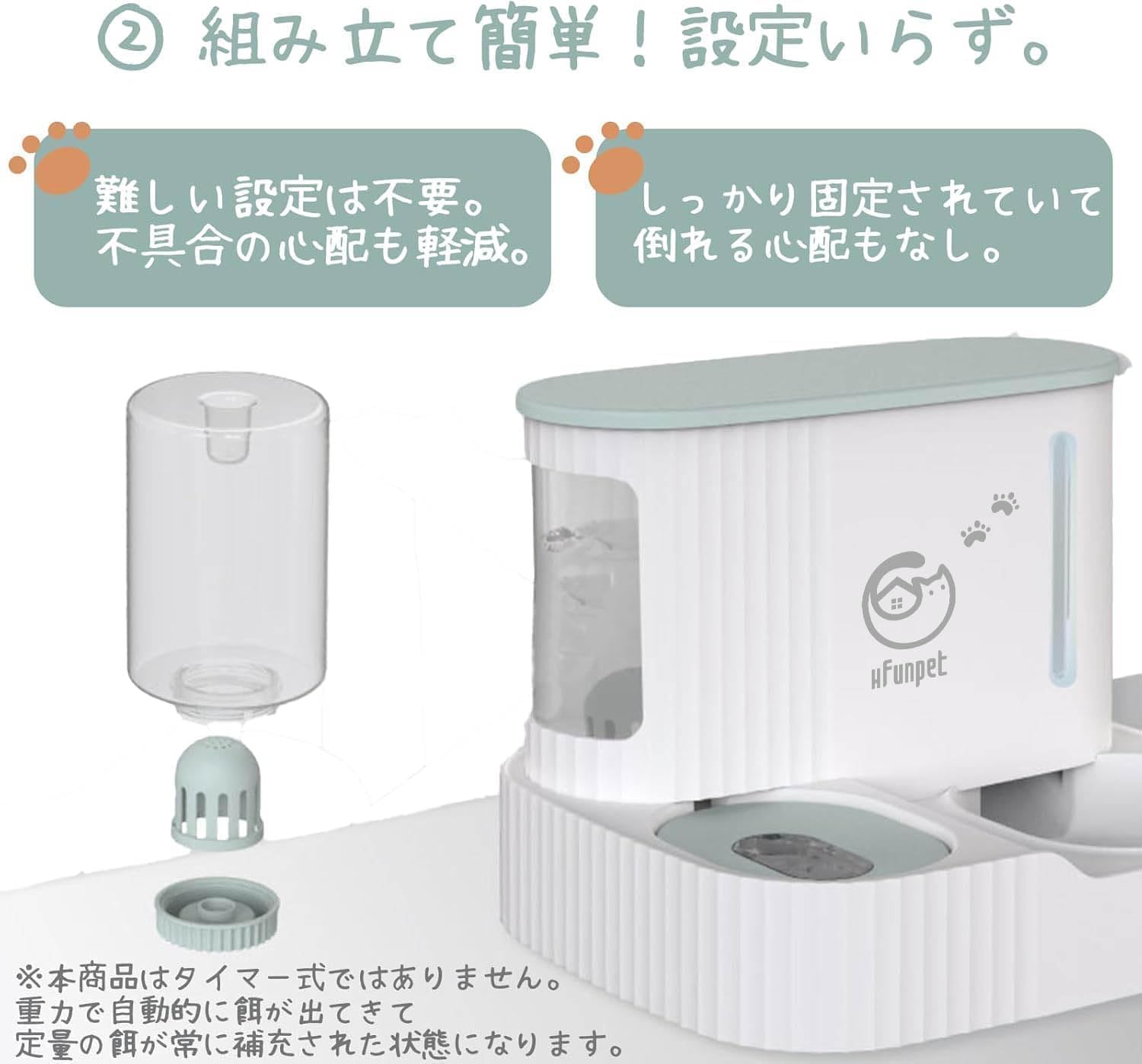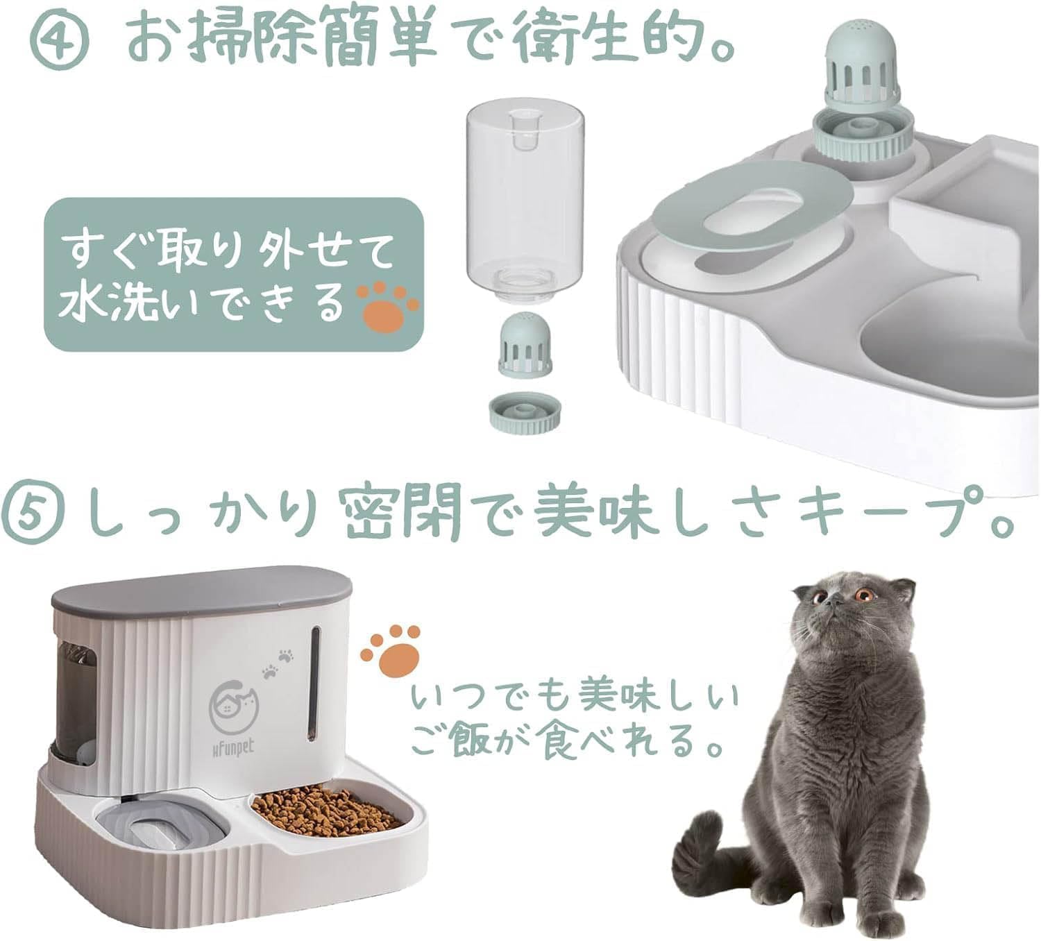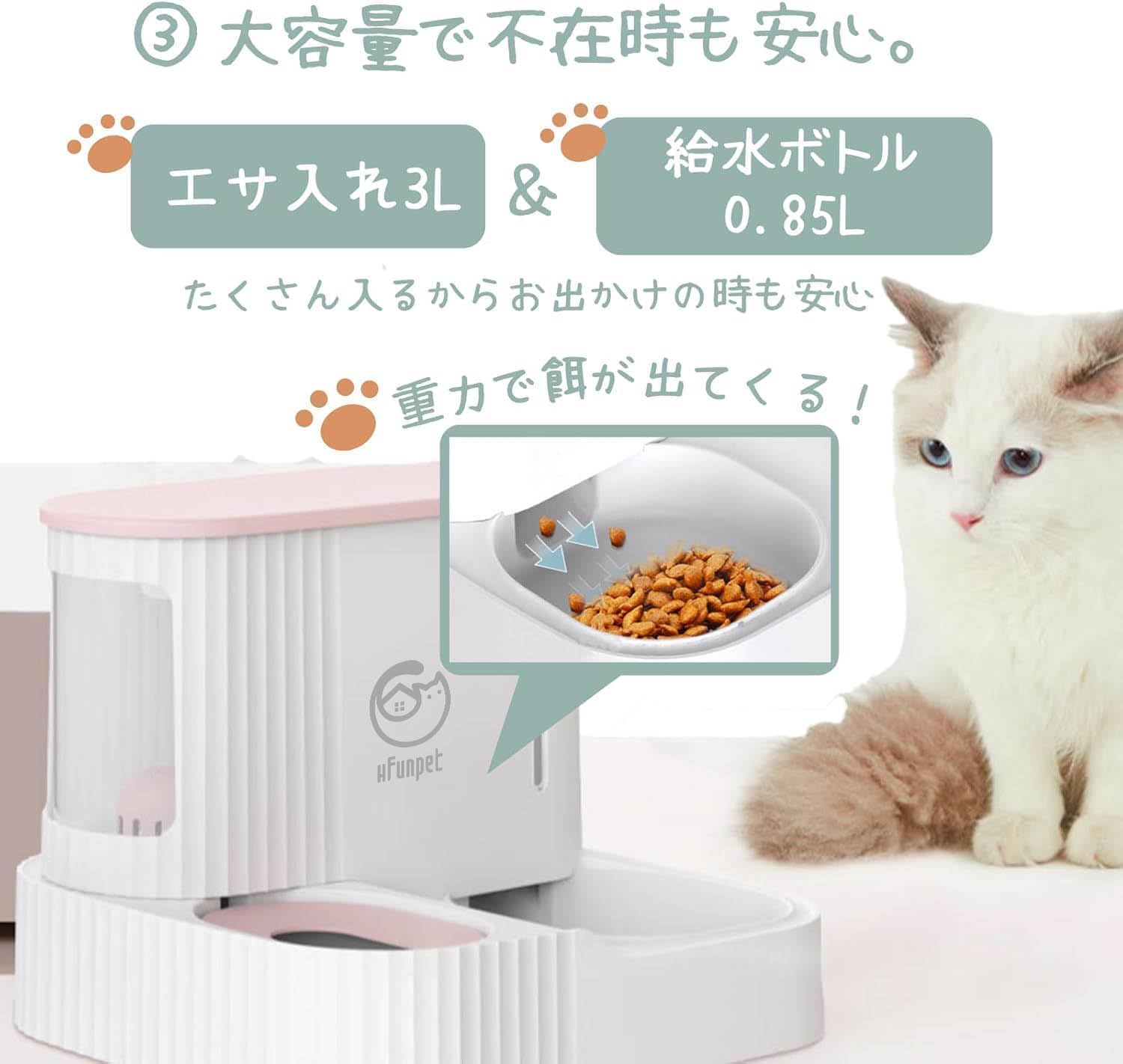 検索用キーワード:自動給餌器 自動給水器 一体型 重力式 電源不要 コードレス 3L 0.85L 大容量 ペット給餌器 フードディスペンサー ウォーターディスペンサー 猫用 犬用 小型犬 中型犬 多頭飼い 子猫 子犬 室内飼い 留守番対策 旅行 出張 共働き 停電対策 防災対策 倒れにくい 安定設計 詰まりにくい フード残量確認 水残量確認 取り外し可能 丸洗い可能 分解清掃 清潔 お手入れ簡単 省スペース シンプル かわいい おしゃれ ペット用品 人気 おすすめ 送料無料 国内発送 爆買