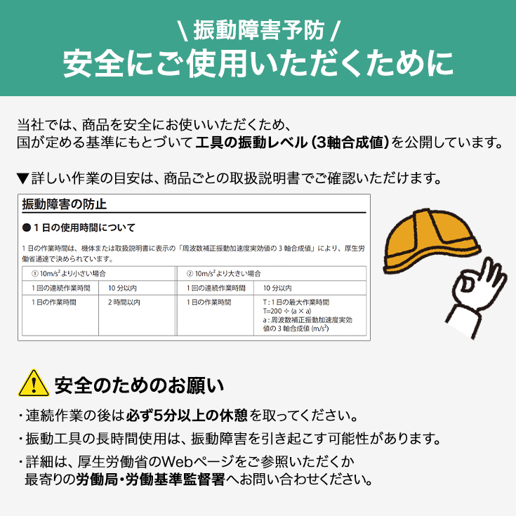 | 三軸合成値 | フロントハンドル:10.9m/s2 リヤハンドル:10.5m/s2 K=1.5 |