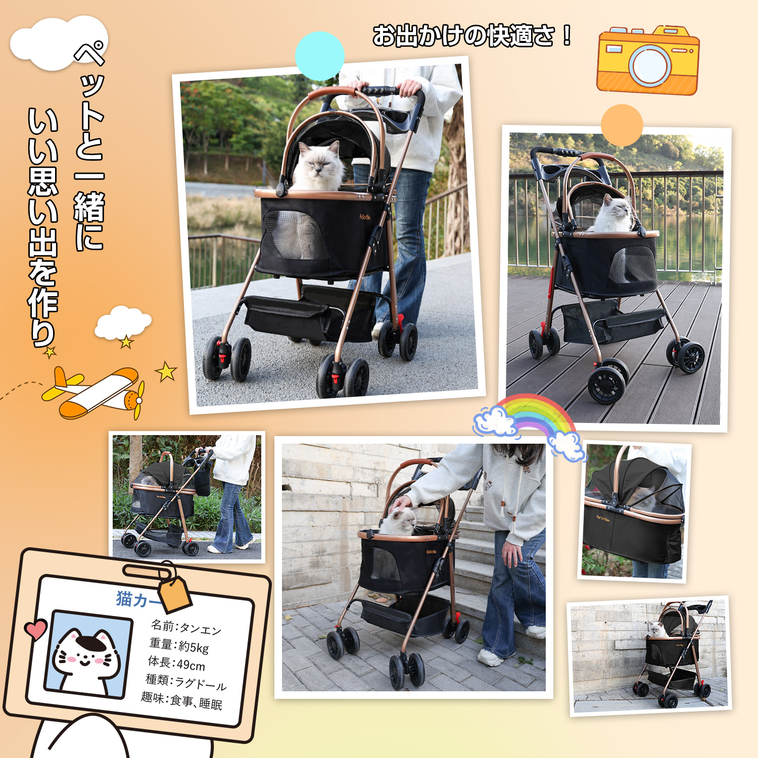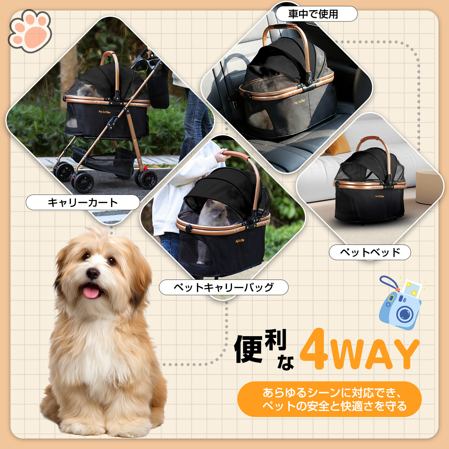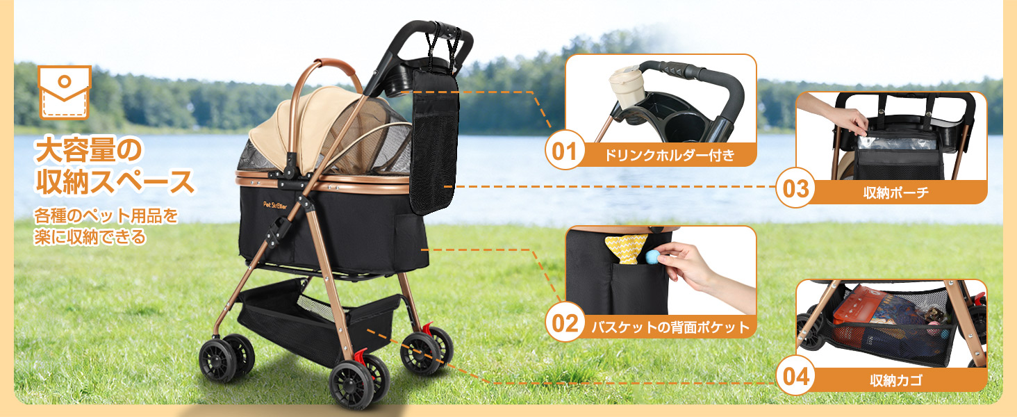 大きいメッシュ窓のデザインを採用し、空気がスムーズに循環して蒸れることがなく、視界も広く閉塞感を感じさせません。バスケットの底部は防湿デザインがあり、厚手のマットも搭載し、湿気を遮断して、爽やかと快適なくつろぎの空間を作り出します。