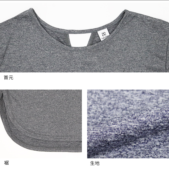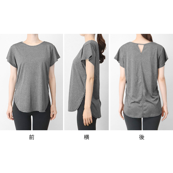 特徴 | さらっとした肌ざわりのラウンドバックオープントップスです。 フロントはシンプルデザインで背中の開きがアクセント。 サイドが短いラウンド裾で足を動かしやすく、 フレアになる袖が気になる二の腕をふんわりさりげなくカバーします。 吸汗速乾と接触冷感機能付きで汗をかいても快適な着心地◎ ジムやホットヨガはもちろん、普段使いにもおすすめです。 |