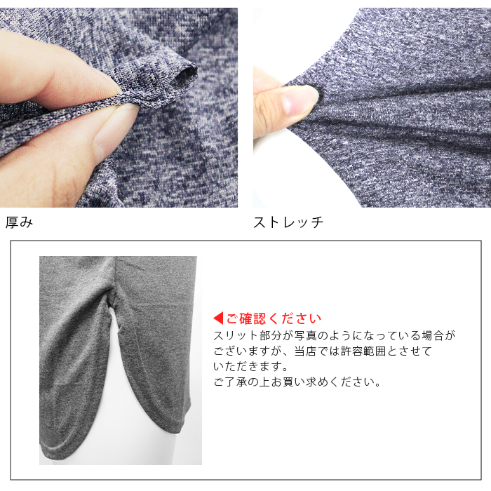 注意事項 | ・色合いはモニタ環境によって若干の誤差があります。 ・色落ちの可能性がありますので、洗濯の際は他の物と区別して漂白剤・タンブラー乾燥を避けてください。手洗いまたはネット洗いをお勧めします。 ・生地の特性上、生産過程において糸の継ぎ目や多少のほつれ、ループなどが生じている場合がございますが、品質上の問題ではございません。 ・生産時期により、色味やストレッチ性能が多少異なる場合がございます。 ・使用感には個人差があります。 |