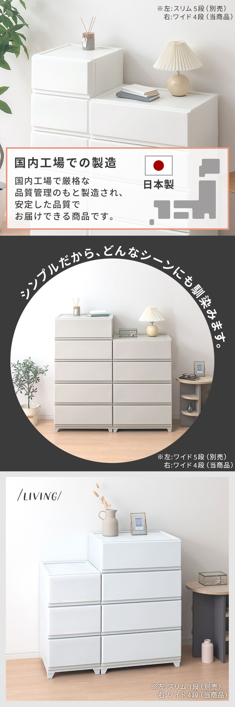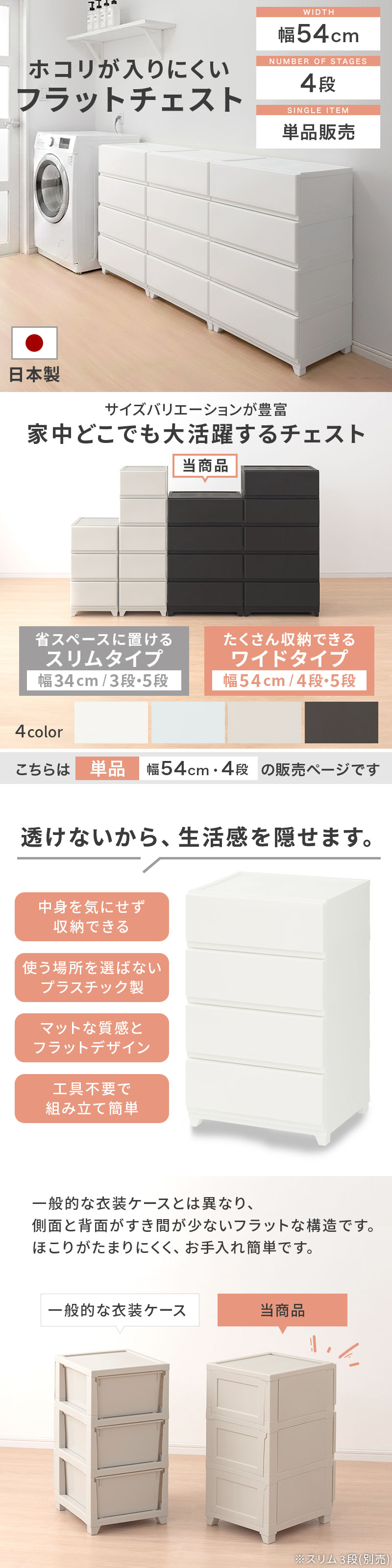 衣装ケース 衣類収納ケース 小物収納ケース 収納ケース チェスト 脚付きチェスト 収納チェスト プラスチックチェスト リビングチェスト カラーチェスト 多段チェスト ランドリーチェスト タンス 収納家具 壁付き 引き出し プラスチック 脚付き 大容量 日本製 国産 ホワイト ライトグレー グレージュ ダークブラウン 送料無料 新生活 部屋 おしゃれ