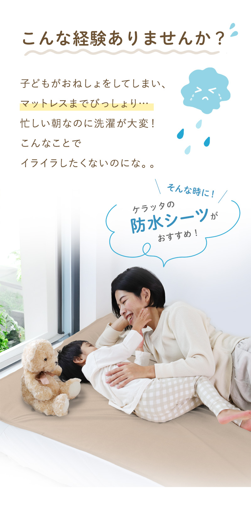布団を濡らさずに毎朝ストレスフリー。