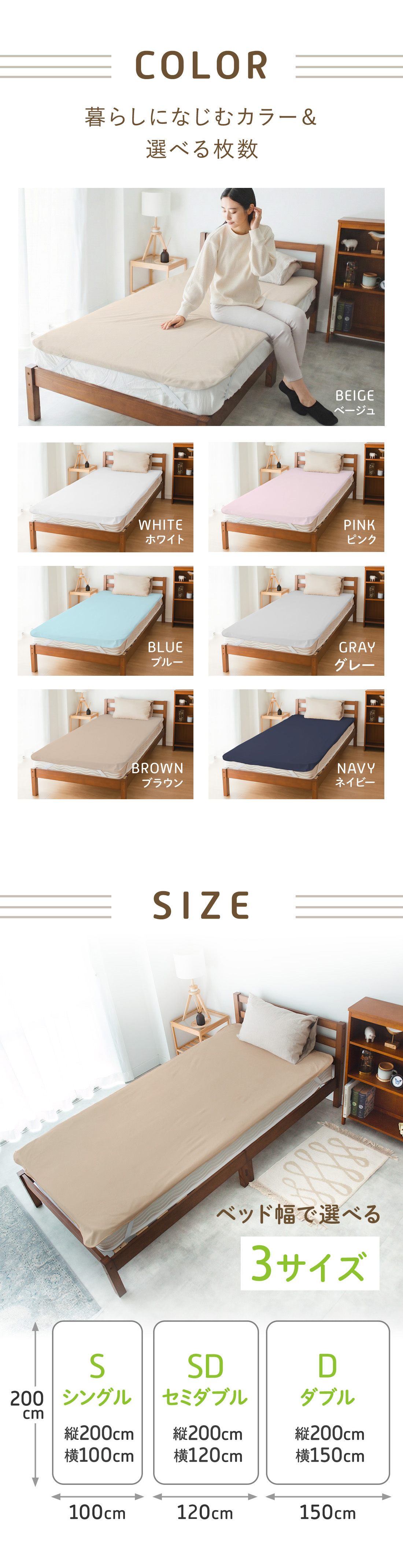 | spec | 【サイズ】 シングル:100×200cm セミダブル:120×200cm ダブル:150×200cm |