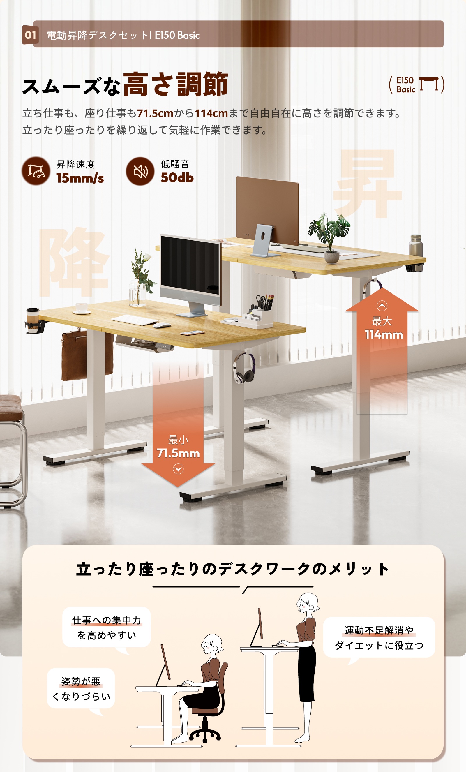 ・商品名:電動昇降デスクセットE150 Basic