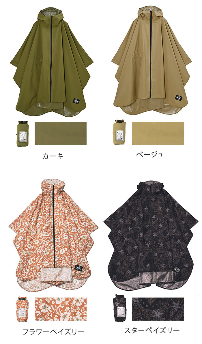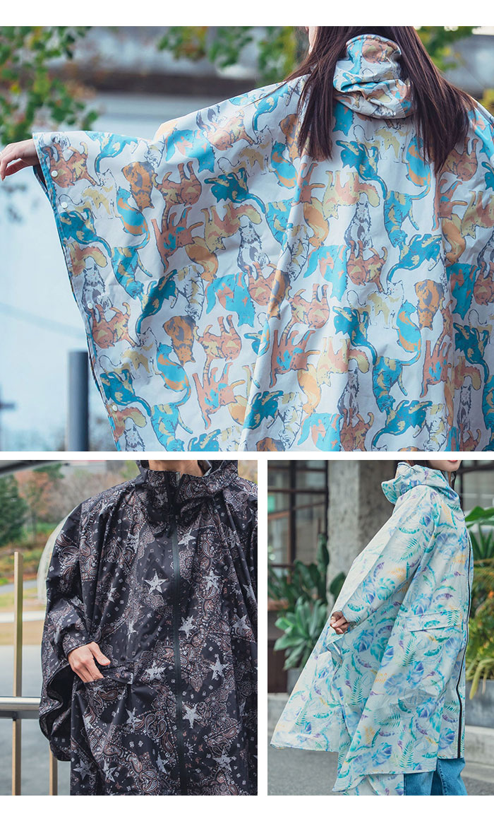 | 特長 | デイリーに使いやすい定番ポンチョがリニューアル。視認性を高めるリフレクター素材をフード・袖・背面に追加し、夜間の安全性が大幅に向上。フルジップアップ仕様、ツバ付きハイネックフード、袖のポタンでサイズ調整可能、フードにドローコードなど、使い勝手にもこだわりました。耐水圧10000mmH2Oで、裏面にもTPUラミネート加工で防水性を向上。縫製箇所にシームテープ、止水ファスナーがついており、微細な隙間からも水漏れしにくい仕様になっています。 |