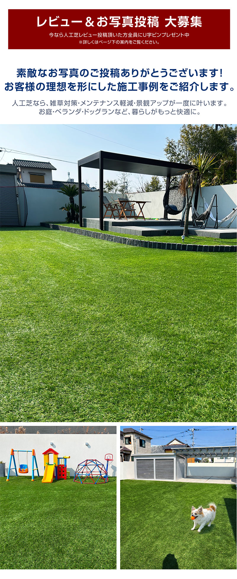 ・人工芝で一年中 美しいお庭を楽しみませんか!しかも、お手入れがとっても簡単