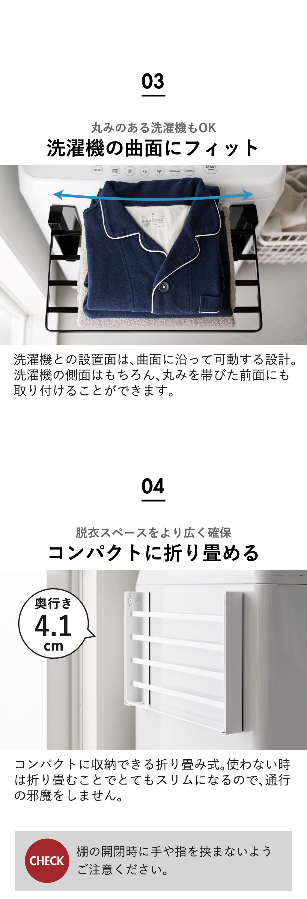 使いやすい高さに開くマグネット洗濯機横折り畳み棚 tower