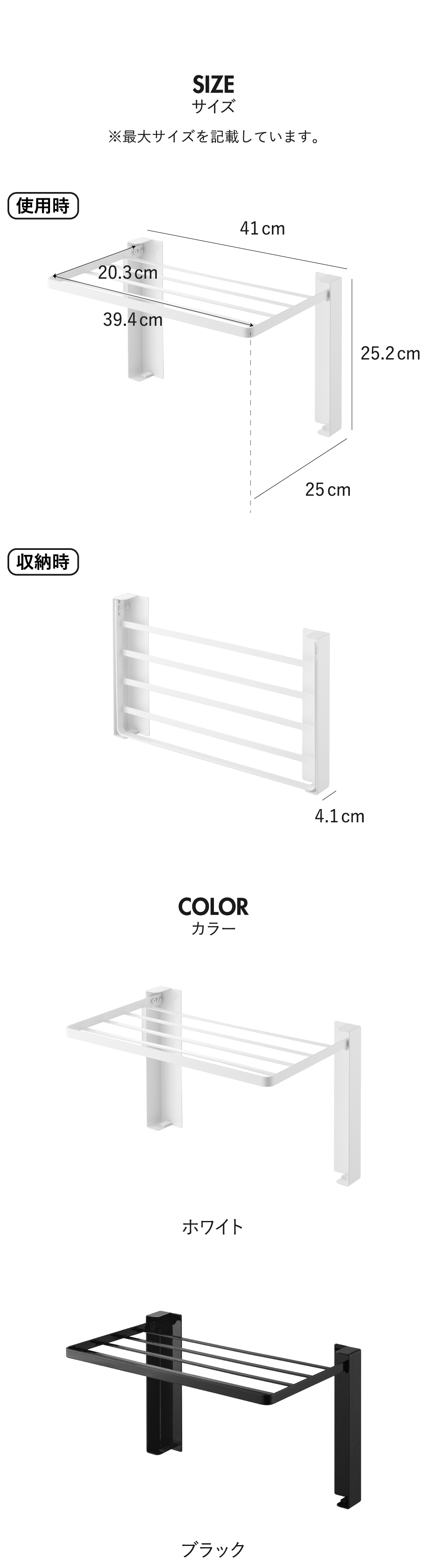 収納時:約幅41cm×奥行き4.1cm×高さ25.2cm