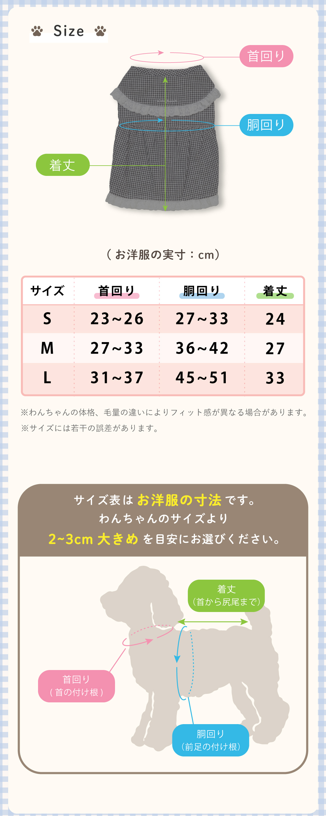 サイズ : S(首回り:23~36cm,胴回り27~33cm,着丈24cm)