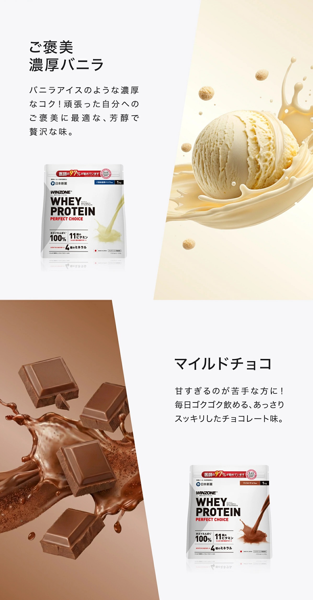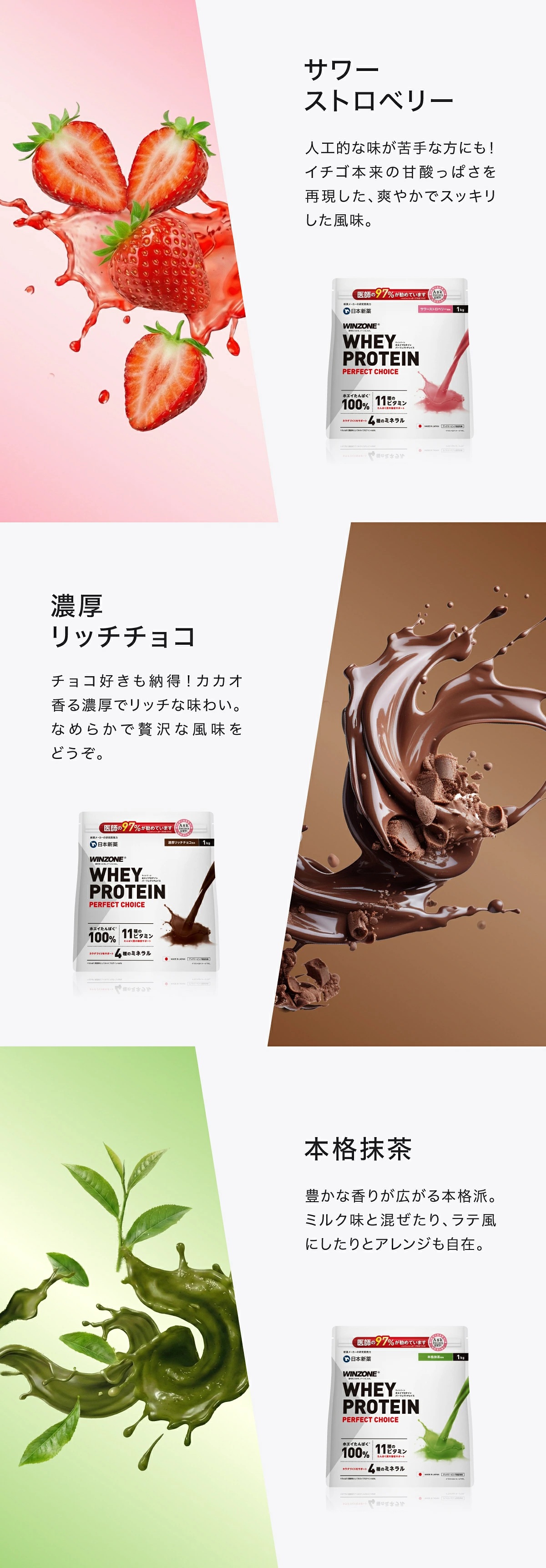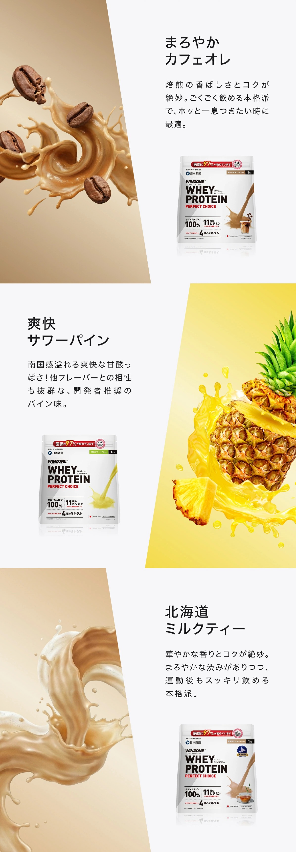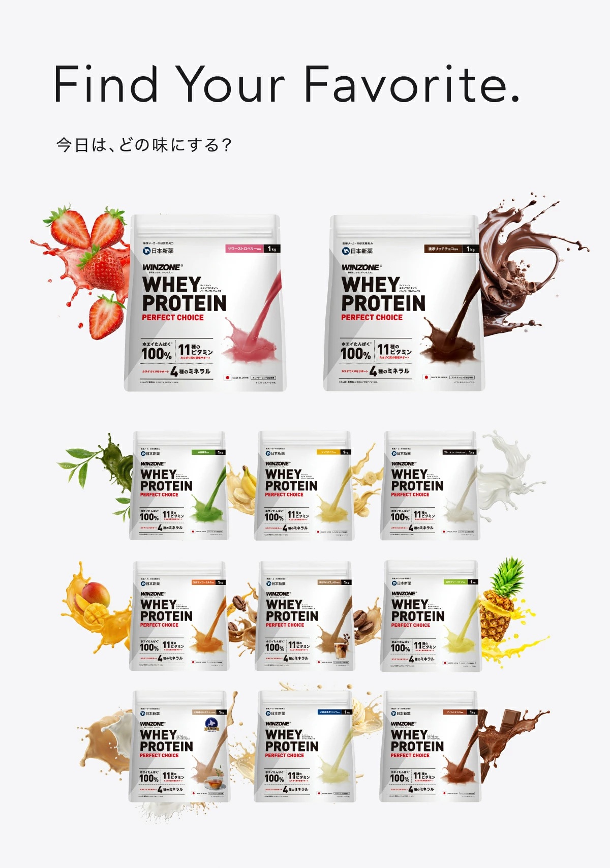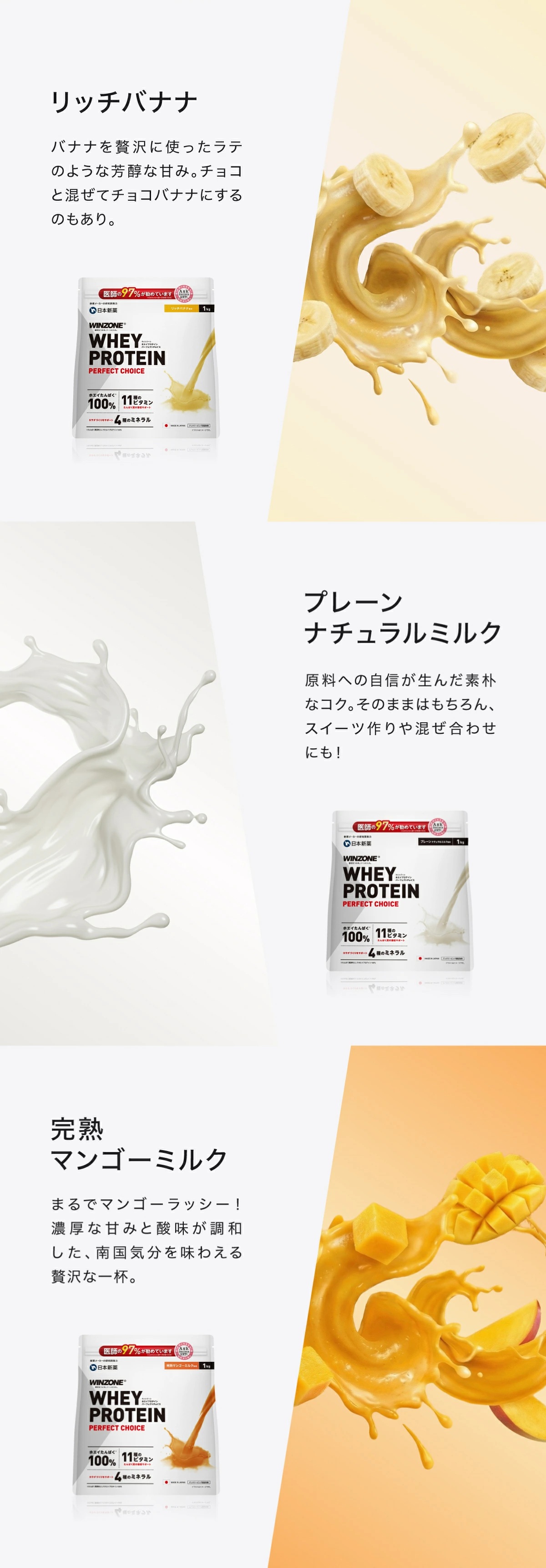 | 風味 | プレーン風味、マイルドチョコ風味、サワーストロベリー風味、リッチバナナ風味、マンゴーミルク風味、抹茶風味、ご褒美濃厚バニラ風味、爽快サワーパイン風味、濃厚リッチチョコ風味、北海道ミルクティー風味、まろやかカフェオレ風味 |