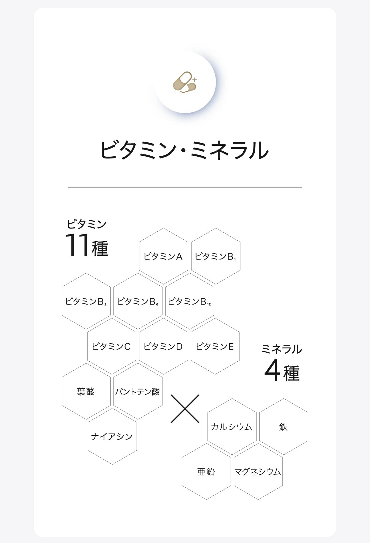 ・ビタミン11種とミネラル4種