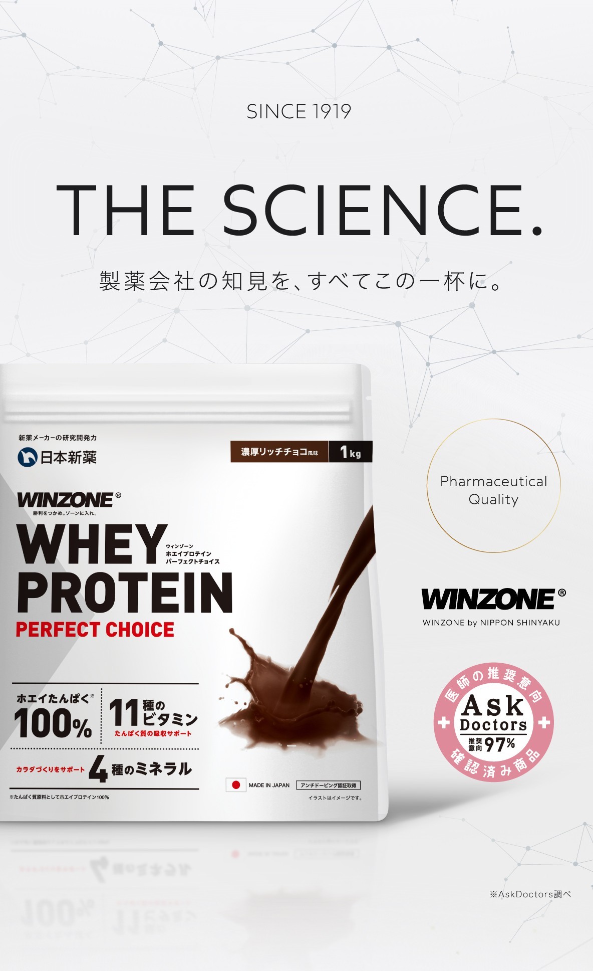 【商品説明】創立100年の製薬会社が開発した高品質、高コスパの革命ホエイプロテイン。