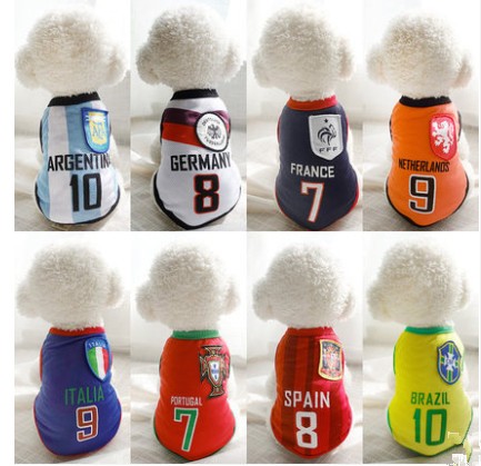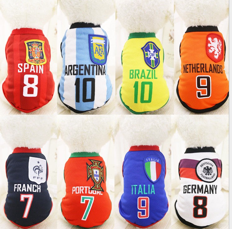 運動風満々、犬用サッカーシャツ。