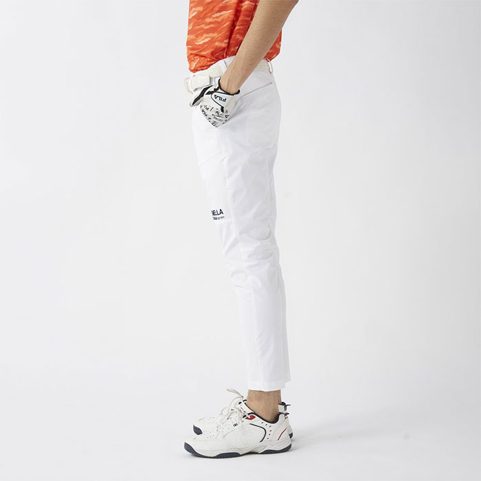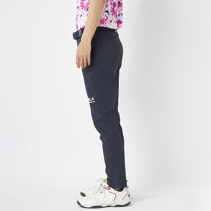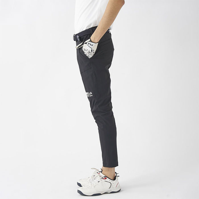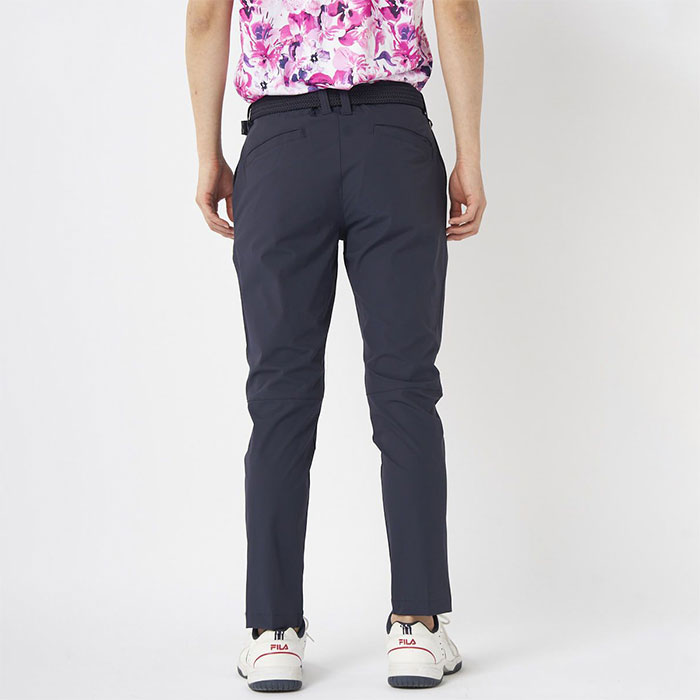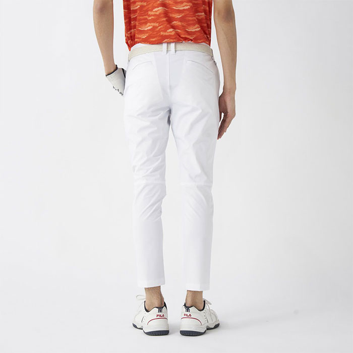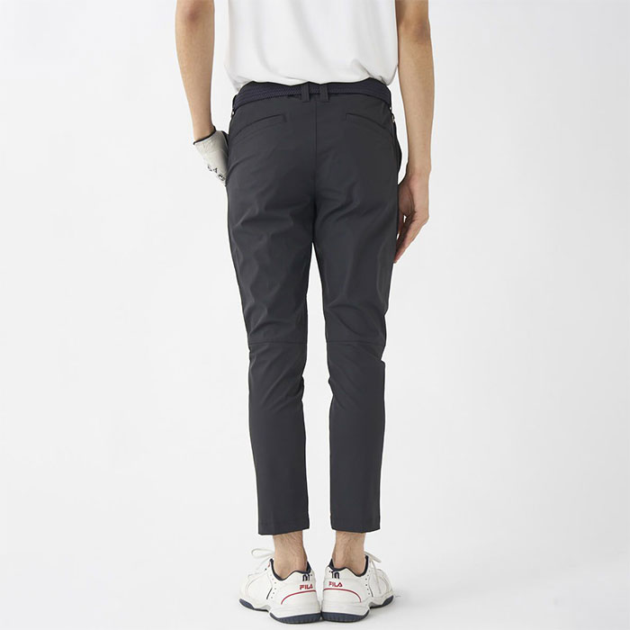 撥水コーティング加工で雨をしっかりガード。天候が変わりやすいゴルフシーンでも安心。裾上げいらずの9分丈仕様に加え、細身のテーパドシルエット。すっきりとしたシルエットで、スタイルアップも叶います。
