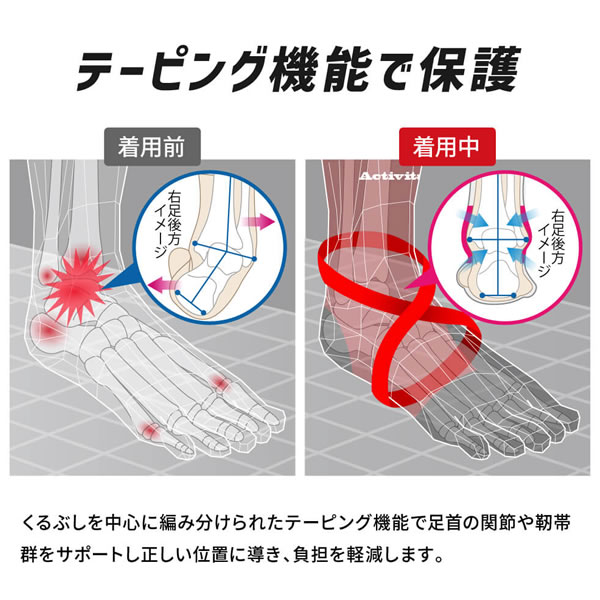 | 商品説明 | 250名以上のスポーツ選手が愛用するActivitalソックスがアップデート! 開発者の靭帯損傷経験から誕生し、トップアスリートも愛用するフットサポーターが遂に5本指バージョンに進化。 特許取得の編み組織が可能にする足首の安定感、足指を強く使える足袋形状が生む質の高いサポート性。 解剖学的アプローチでしたグリップ力は従来ソックスの1.6倍!さらにSEK抗菌防臭加工の糸を採用。 |