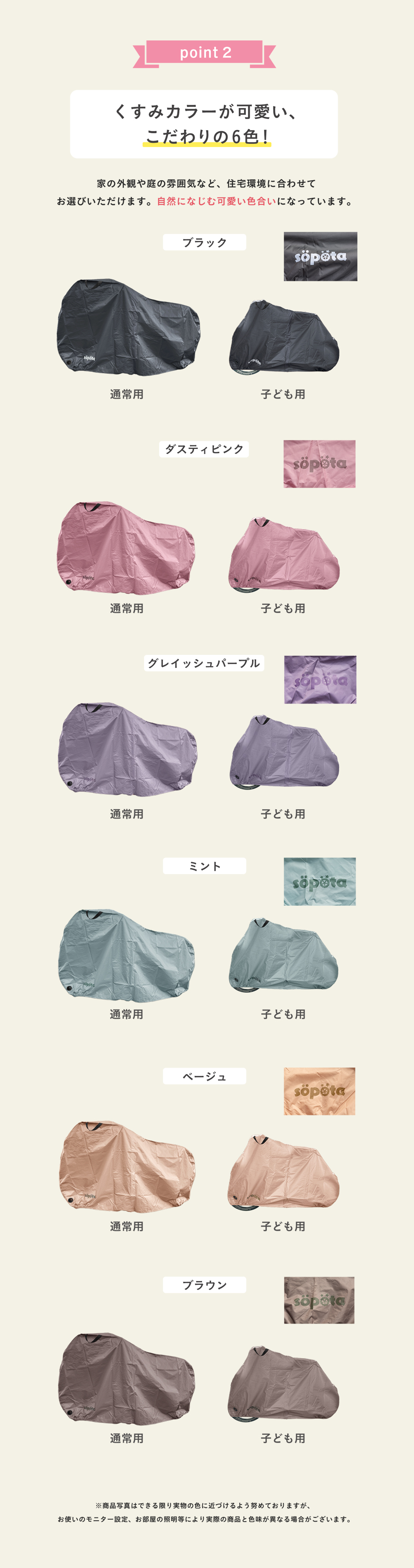 自転車カバー 防水 厚手 電動自転車 2タイプ(通常用/子供用)×6色展開 SOP-CO