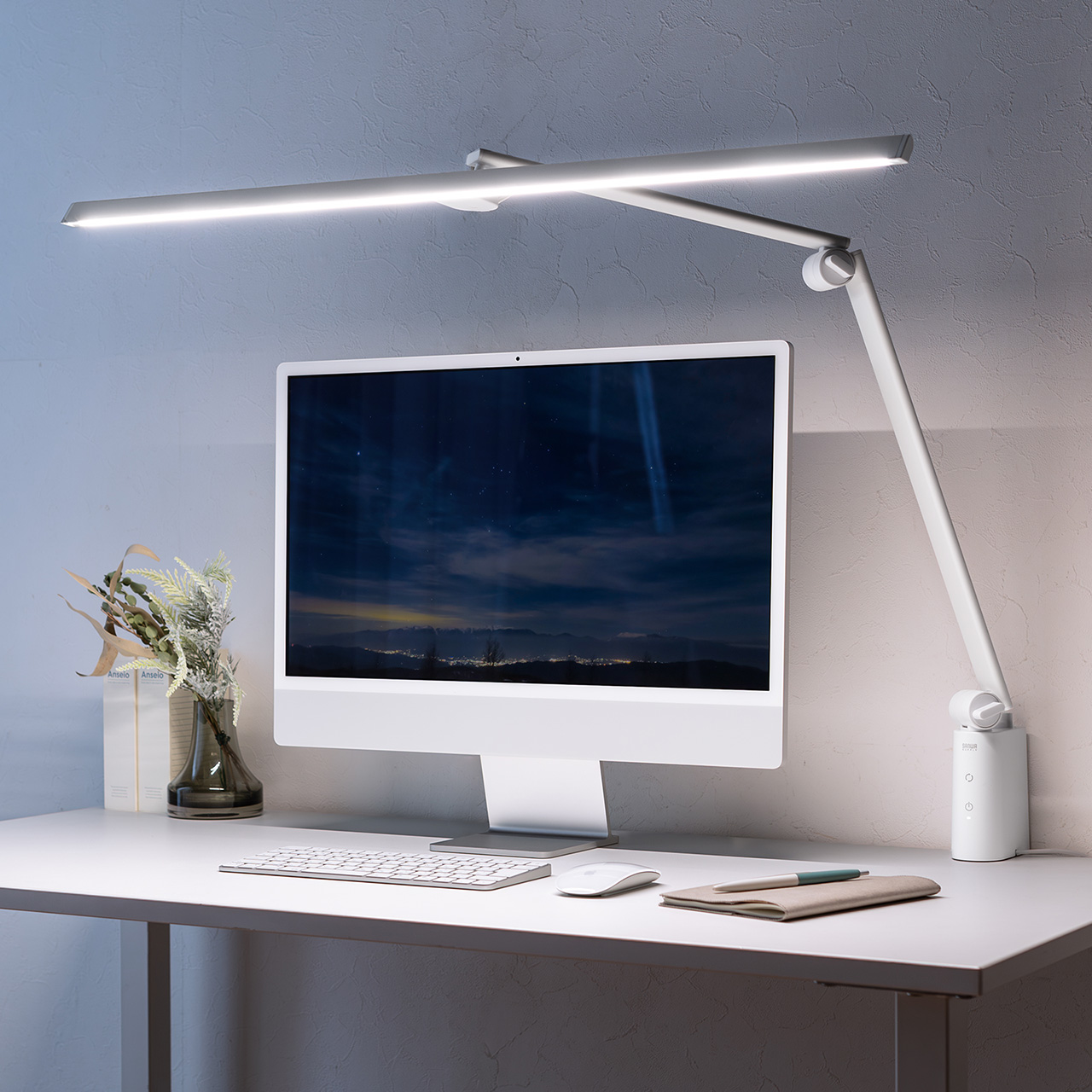 LED部が自由に動くので、当てたい箇所に調整できる可動型。多関節タイプでアーム長も長いので、モニター上部から照らすことも可能なデスクライト。1650ルーメン。調色・調光も可能なLEDライト。【WEB限定商品】