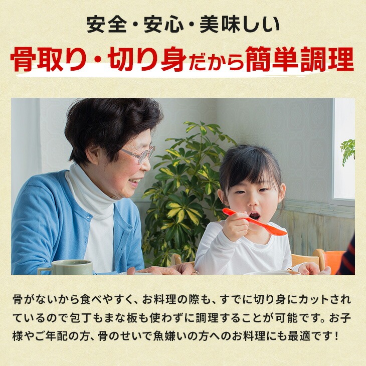 本製品は手作業で丁寧に骨を除去しておりますが、稀に残留している事もございますのでご注意ください。