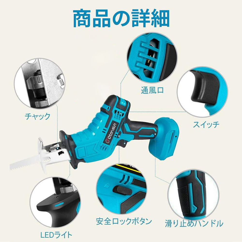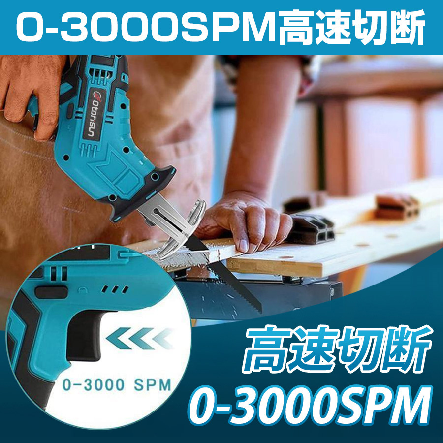 【4本替刃が持つ】マキタの18Vリチウムイオンバッテリーを使用して、高速で切断することが可能です!木材/15cm 塩ビパイプ/15cm 軟鉄パイプ/10cm軟鉄材/3mm厚。3000min-1高速ストローク&無段変速機構、高速ストローク、従来品と比較して切断スピードが約20%アップできます。