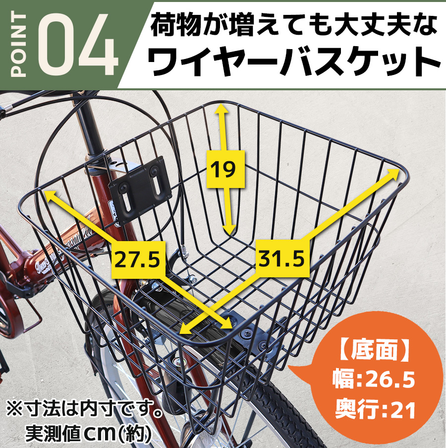 ■カゴサイズ(底面、約cm)/L21×W26.5×H19